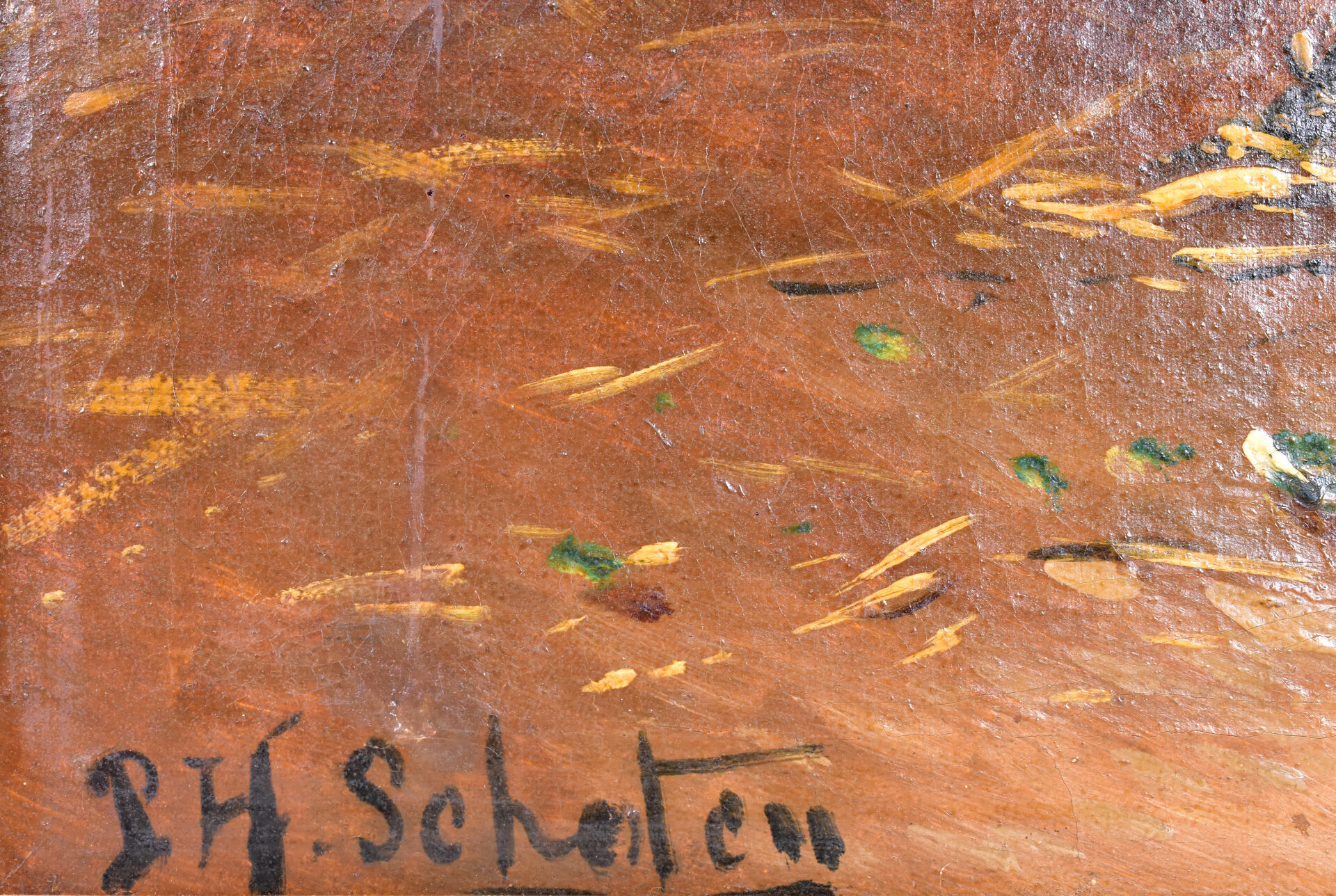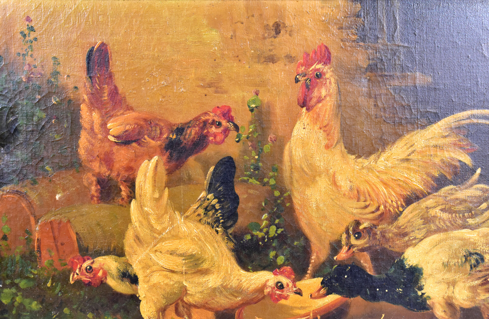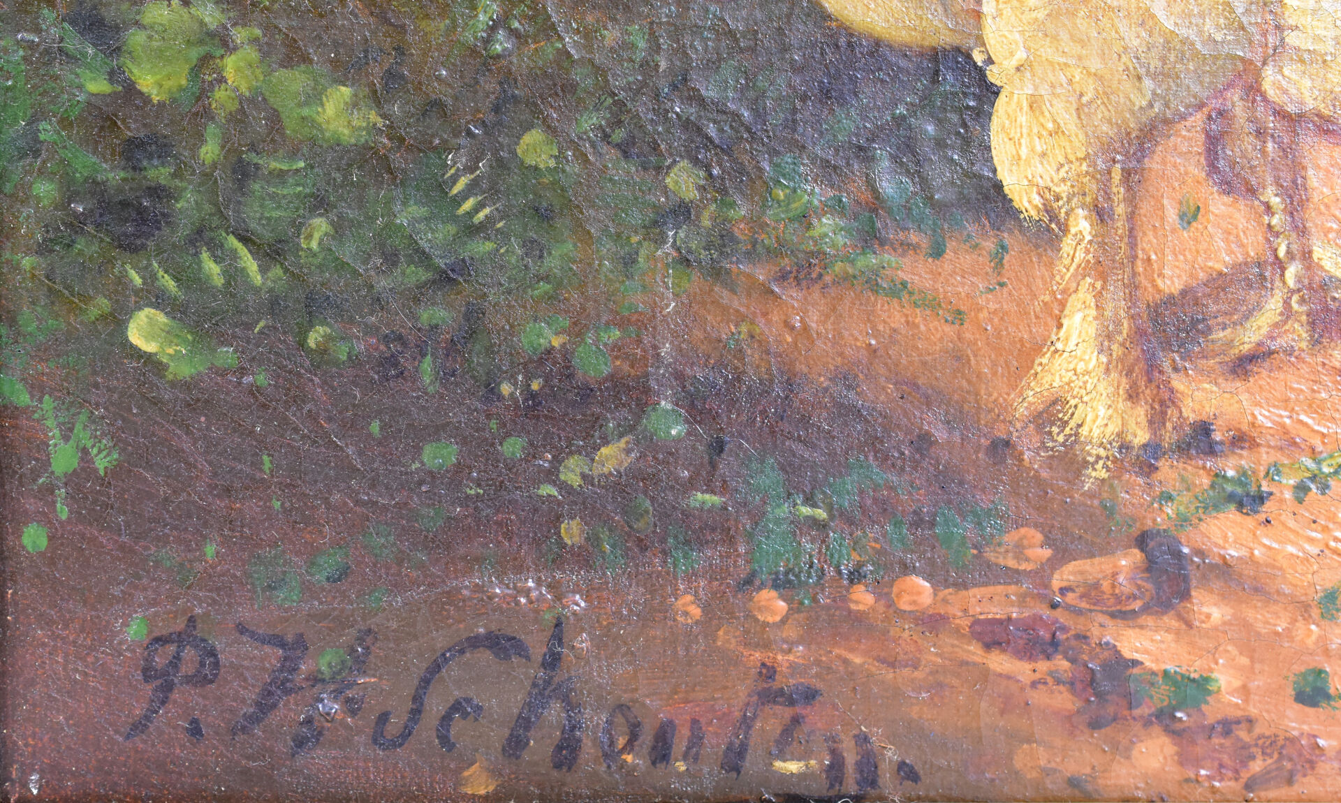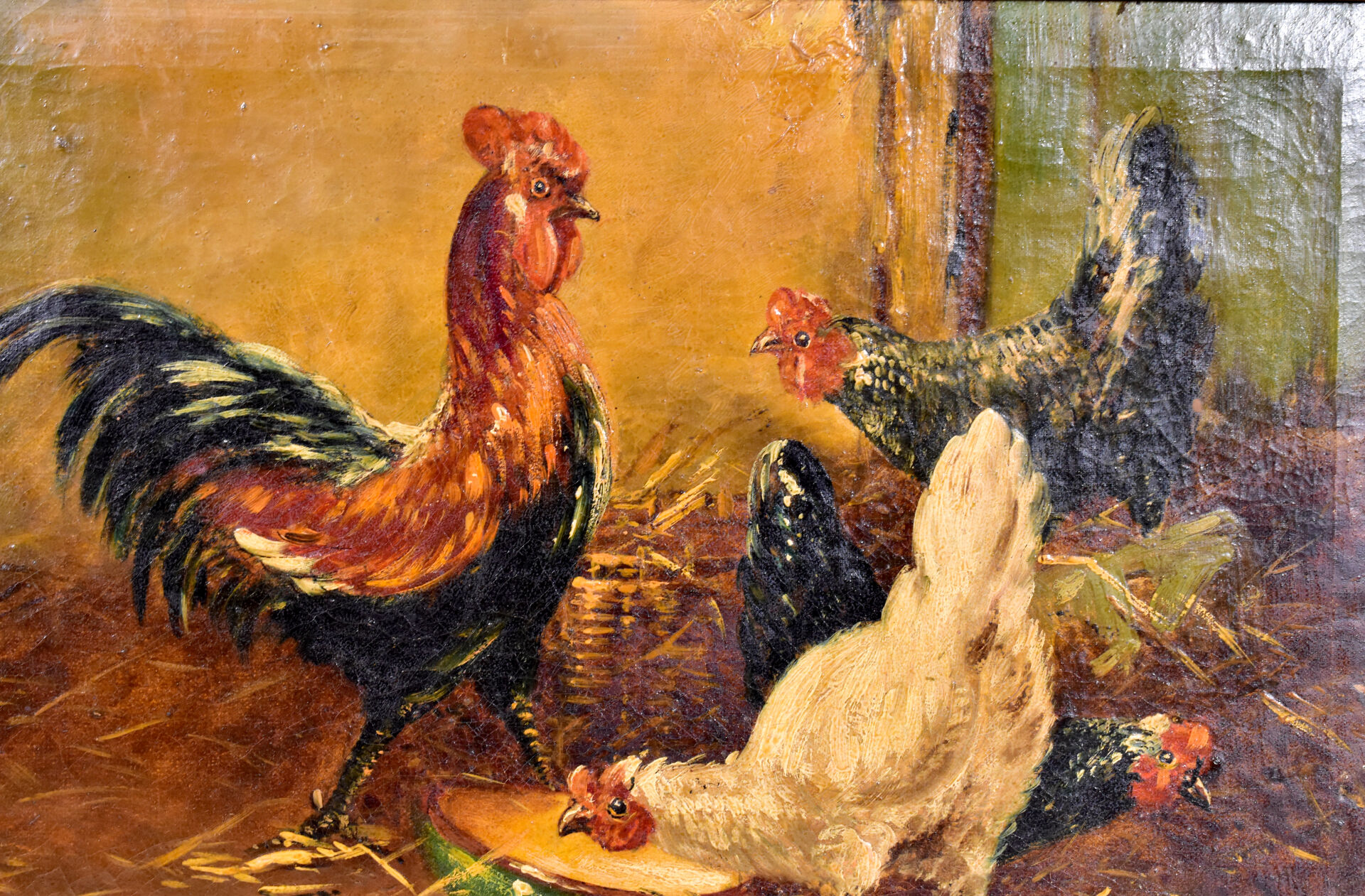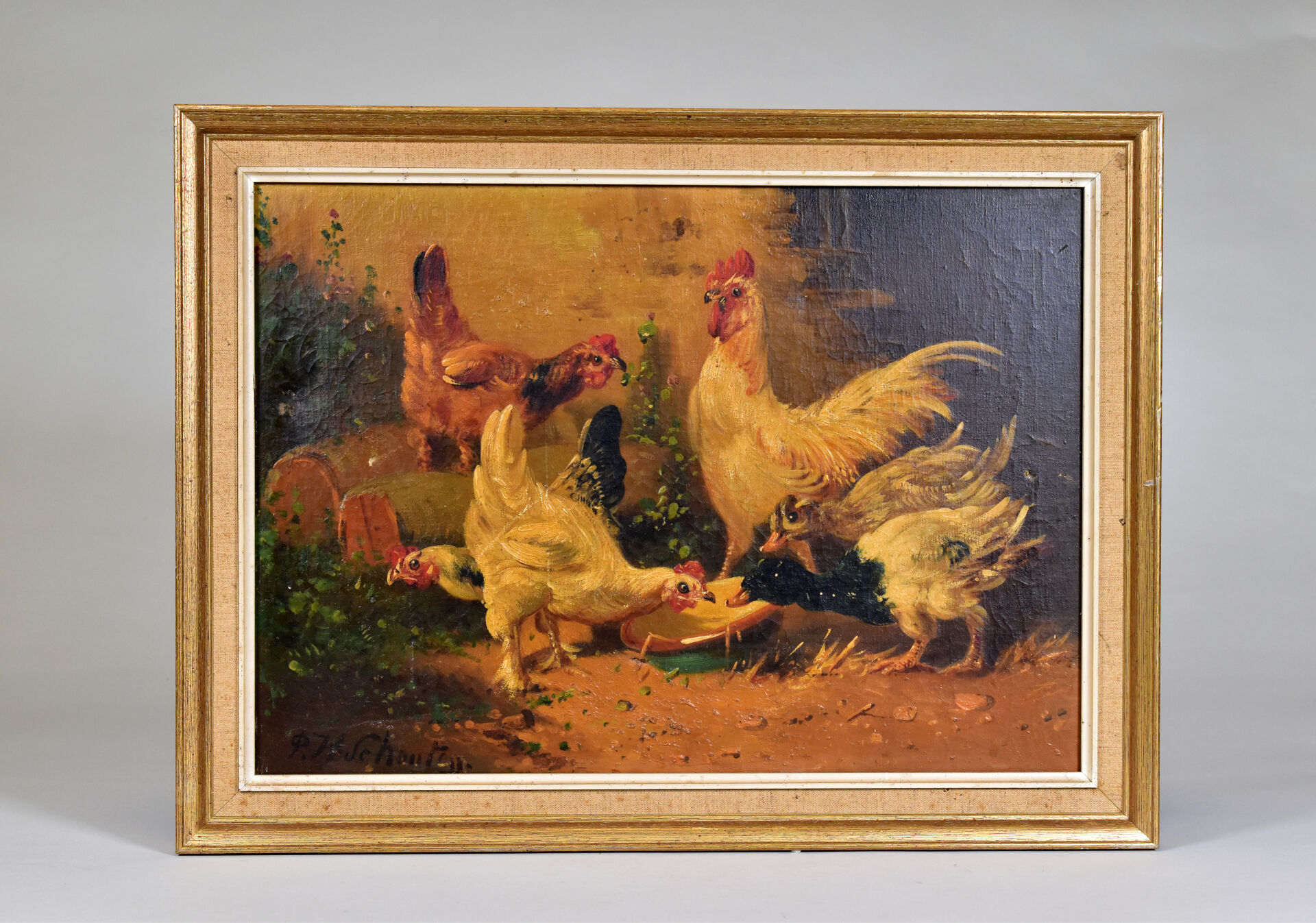 Henri SHOUTEN (1857 – 1927). Basse cour. Deux huiles sur toile signées en bas à gauche. 36 x 50,5 cm.