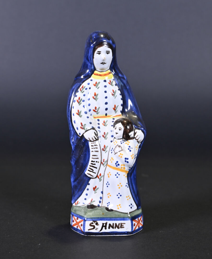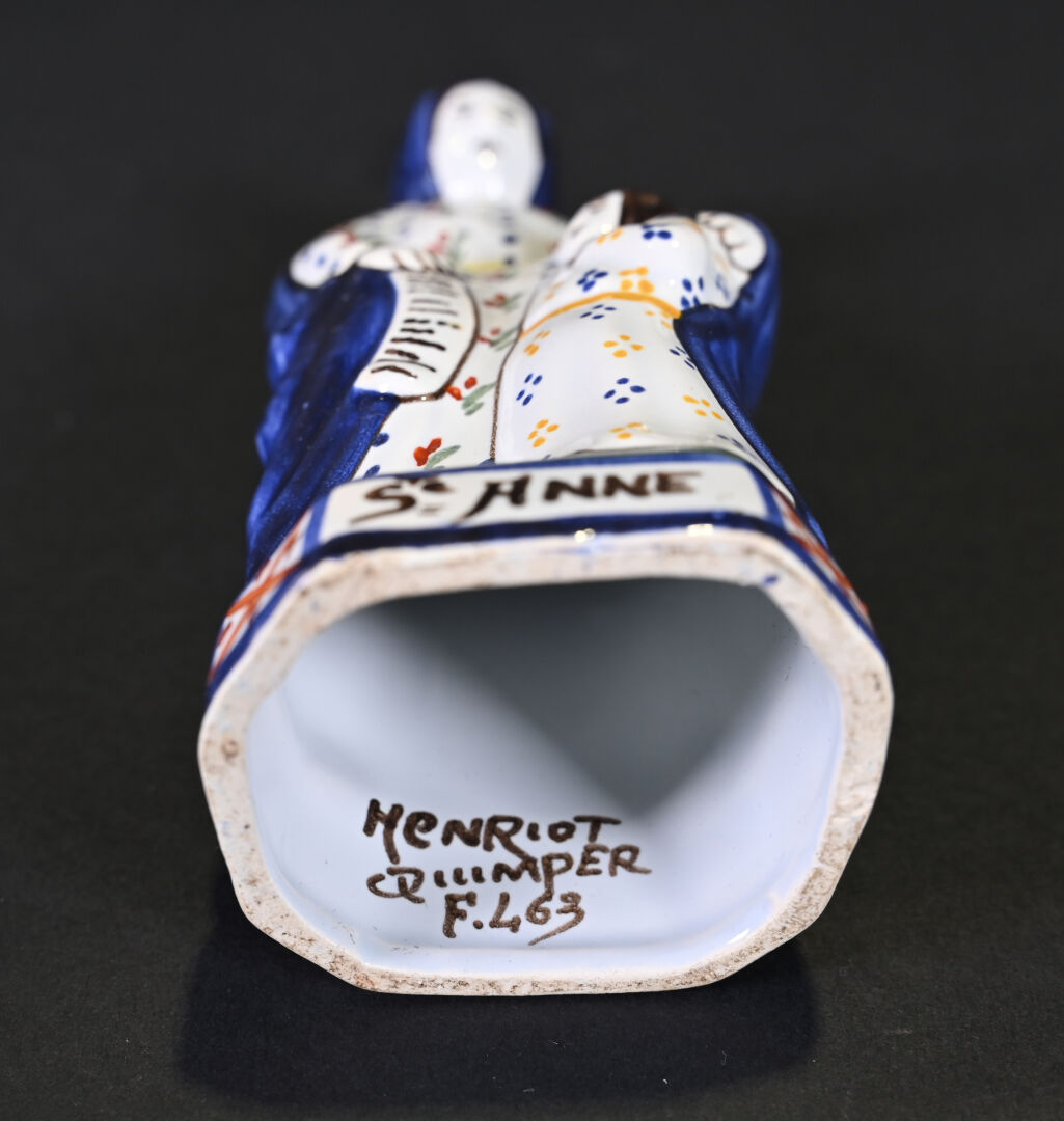 HENRIOT QUIMPER. Sainte Anne en faïence (égrenure sur le nez). Marqué au dessous. Haut. : 16 cm.