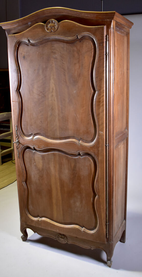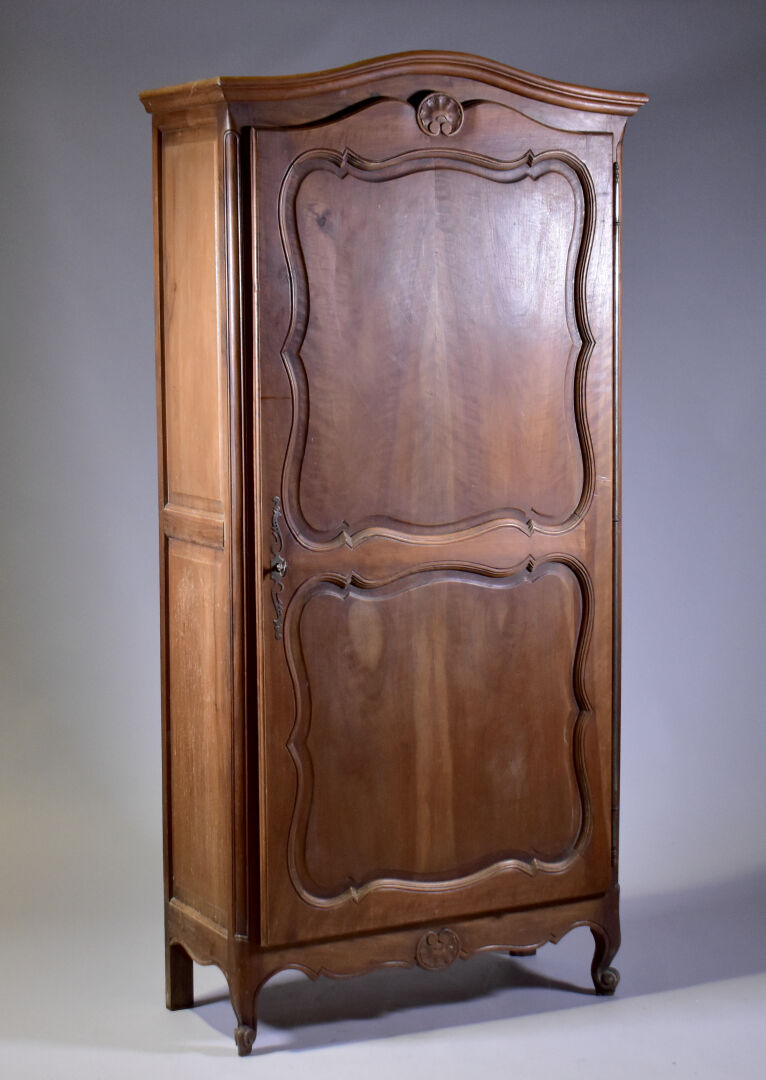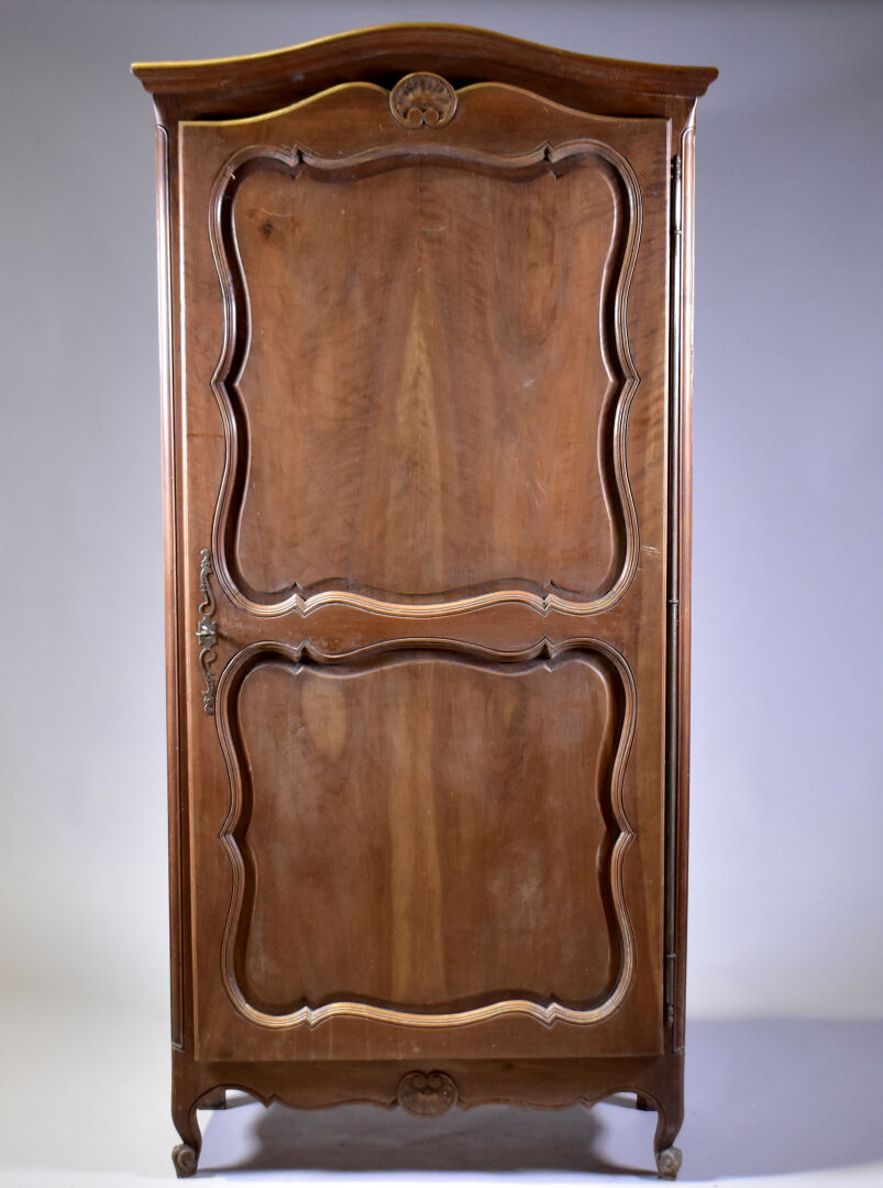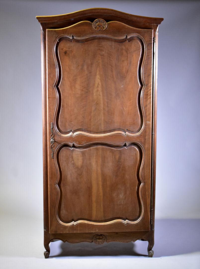 Homme debout en noyer mouluré, il ouvre à une porte et repose sur quatre pieds, les antérieurs cambrés. Style Louis XV, XXe siècle. Haut; : 188 cm.