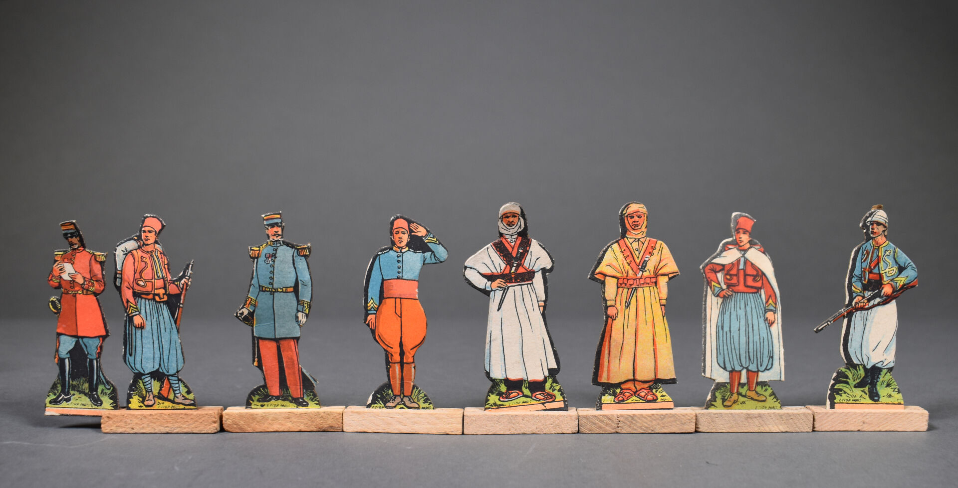 Important lot de figurines de papier et carton. 74 pièces image d’Epinal et diverse circa 1900 /1930.