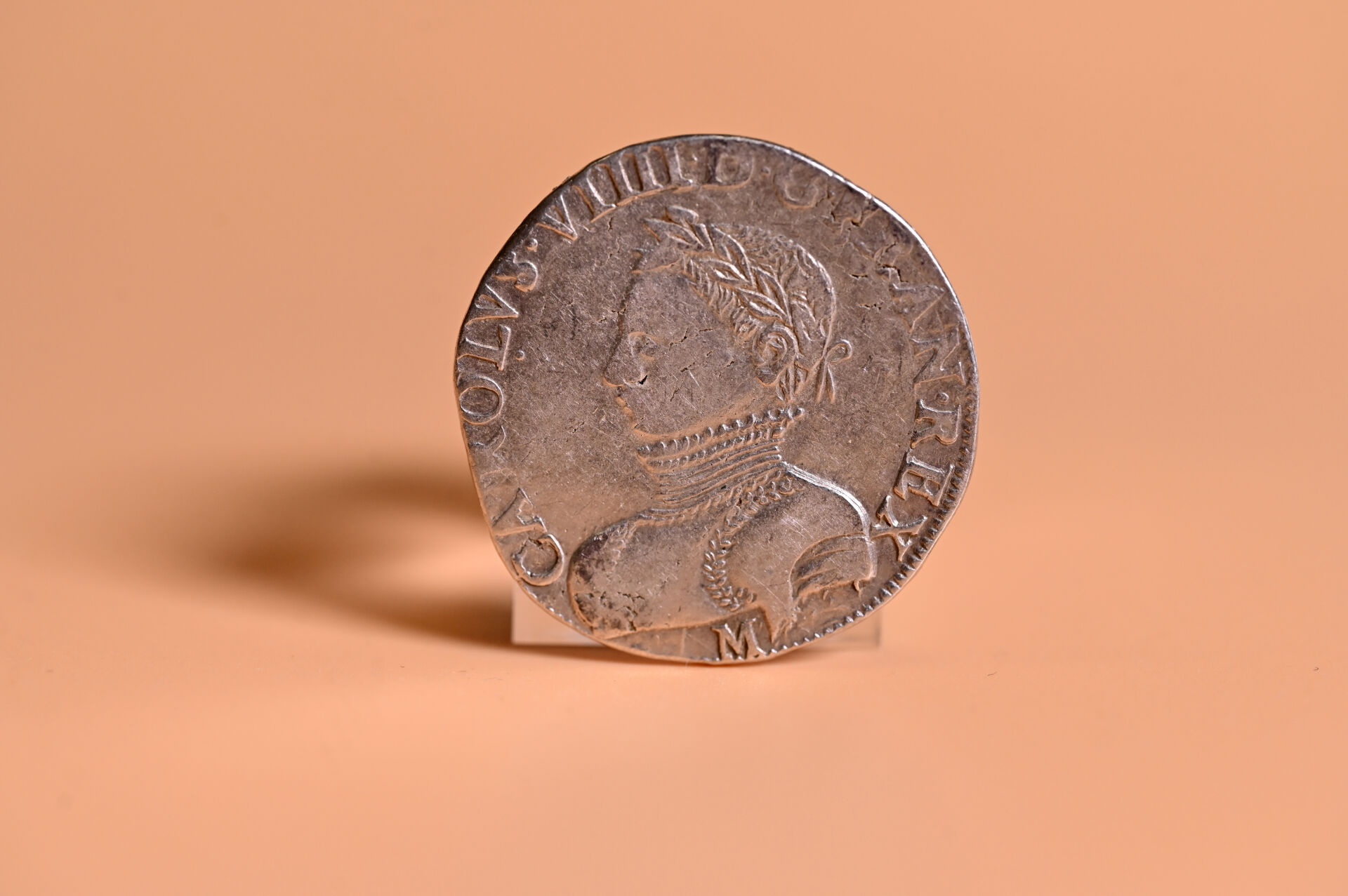 ISSUE D’UN TRÉSOR. CHARLES IX (1560-1574). Teston. 1er t. Toulouse. 1566. (Dy. 1063). Arg. 9,36 g. Traces de rouille au revers sinon Très Beau. Expert : Cabinet Bourgey – Tél : 01 47 70 35 18