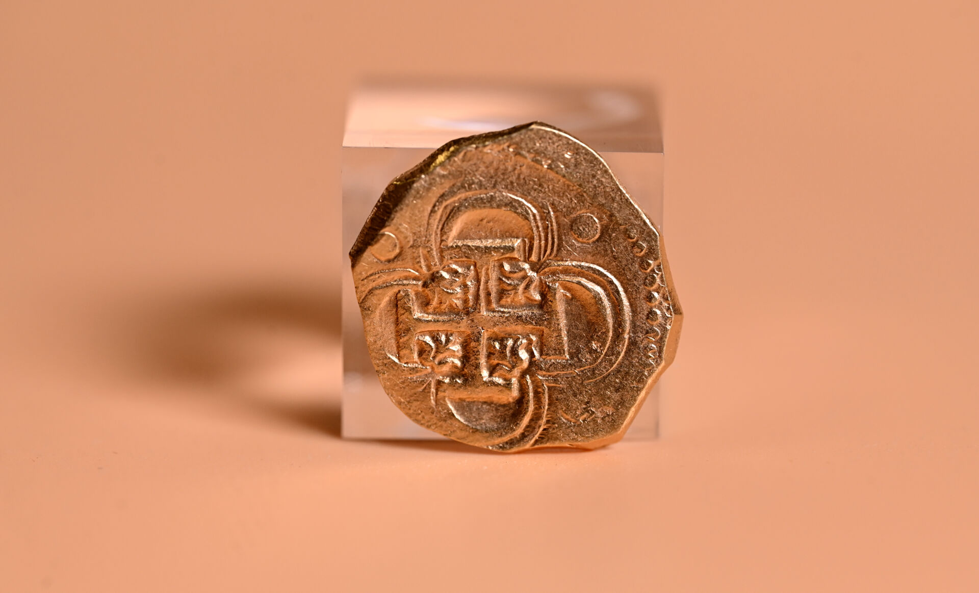 ISSUE D’UN TRÉSOR. ESPAGNE. PHILIPPE II (1556-1598) ou III (1598-1621). 2 escudos. Séville ? ND. Écu couronné. R./ Croix potencée dans un double quadrilobe. (voir Cal. tipo 259 (Philippe II) ou Cal. Tipo 195 (Philippe III)). Or. 6,81 g. TB à Très Beau. Expert : Cabinet Bourgey – Tél : 01 47 70 35 18
