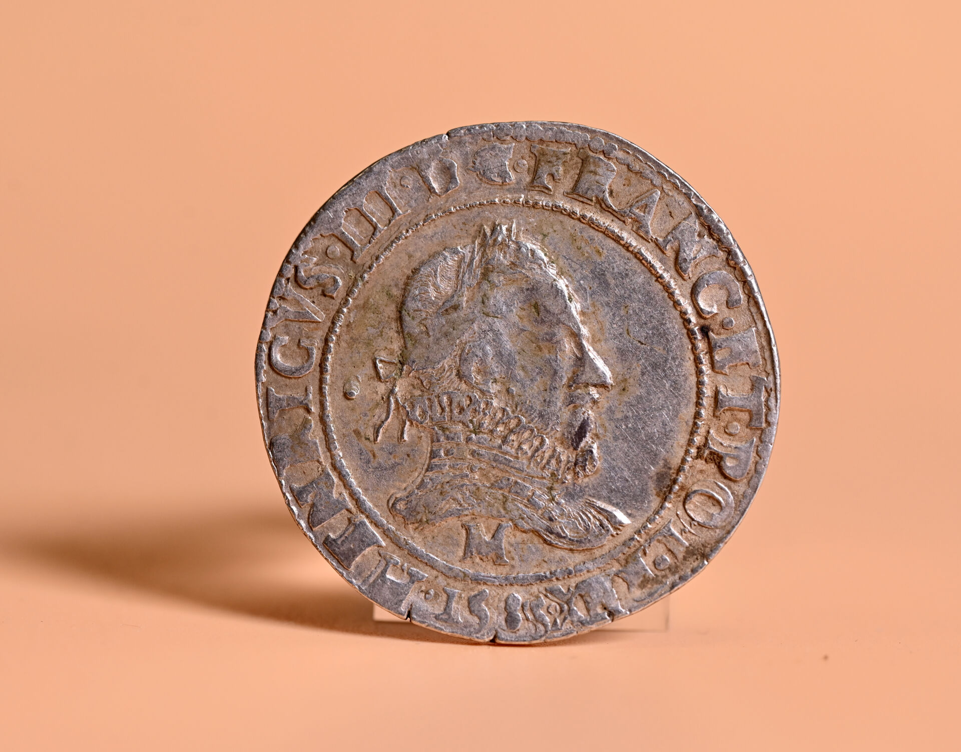 ISSUE D’UN TRÉSOR. HENRI III (1574-1589). Franc d’argent. Toulouse. 1585. (Dy. 1130A). 14,06 g. Très légères encoches sur la tranche sinon Presque Très Beau. Expert : Cabinet Bourgey – Tél : 01 47 70 35 18
