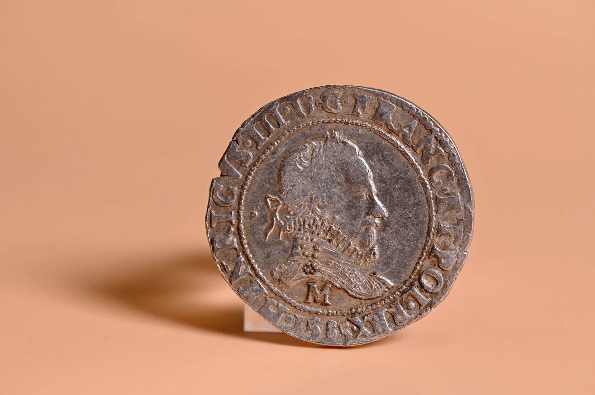 ISSUE D’UN TRÉSOR. HENRI III (1574-1589). Franc d’argent. Toulouse. 1585. (Dy. 1130A). 14,14 g. Légères encoches sur la tranche sinon Presque Très Beau. Expert : Cabinet Bourgey – Tél : 01 47 70 35 18