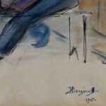 J. BERGERE (XIXe – XXe siècle). Marins dans une maison de joie. Aquarelle signée, datée 1915 et située Rue BAYLE en bas à droite (papier légèrement gondolé). 31 x 22,5 cm.