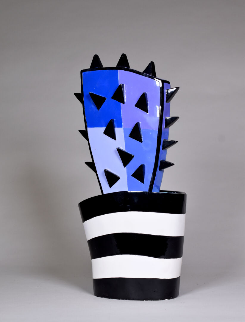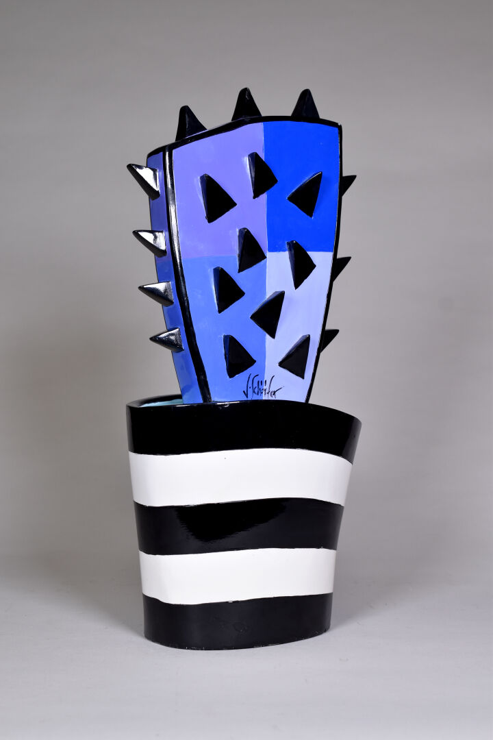 Jacqueline SCHÄFER (Née en 1961). Cactus. Sculpture en résine polychrome, signé et numérotée 30/50 (égrenures). Haut. : 48 cm – Larg. : 21 cm – Prof. : 12 cm.