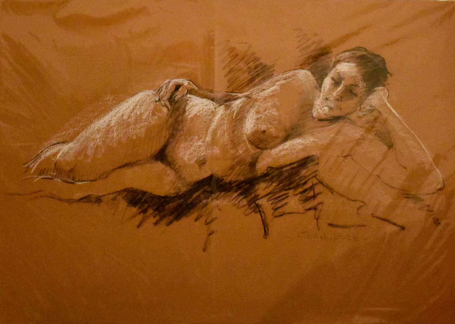 Jacqueline TOLLET-LOEB (Née en 1931). Deux nus Dessins au fusain et craie non encadrés signés. 50 x 70 cm.