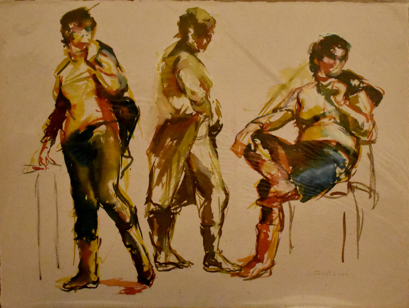 Jacqueline TOLLET-LOEB (Née en 1931). Dormeur et études de corps. Deux dessins, l’un à la gouache et au fusain, l’autre à l’encre, non encadrés signés. 70 x 50 cm.