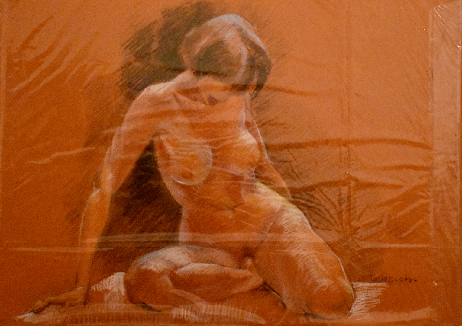 Jacqueline TOLLET-LOEB (Née en 1931). Femme au chignon et nu assis. Deux pastel et fusain, signés. 70 x 50 cm.
