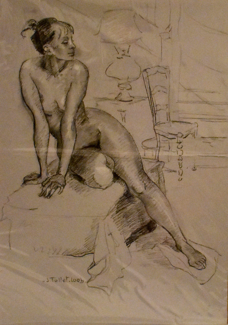 Jacqueline TOLLET-LOEB (Née en 1931). Trois études au fusain Deux dessins non encadrés signés. 70 x 50 cm.
