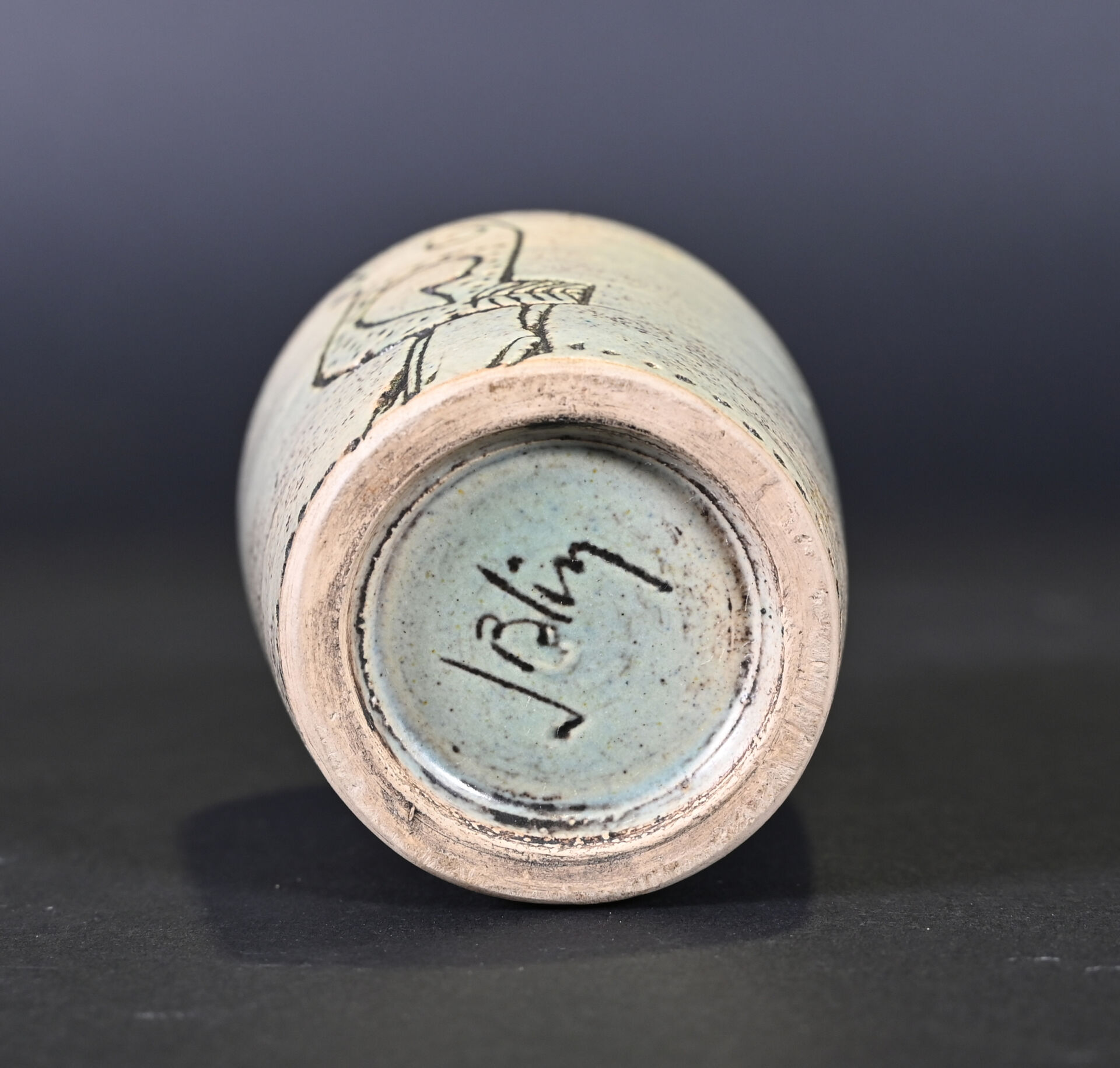 Jacques BLIN (1920 – 1995). Vase bouteille en céramique à décor en creux d’un oiseau. Signé au dessous. Haut. : 12,5 cm.