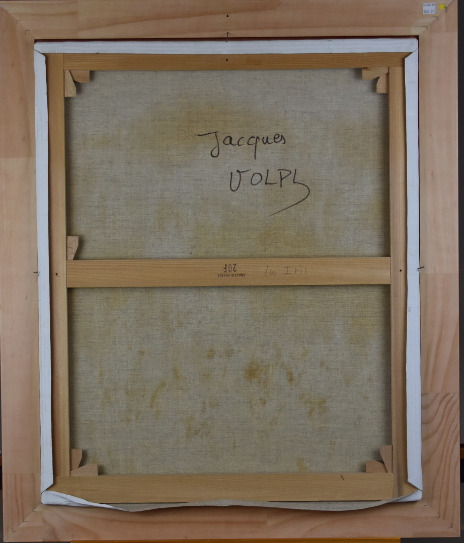 Jacques VOLPI (Né en 1948). « Les Iris ». Huile sur toile signée en bas à droite. 73 x 60 cm.