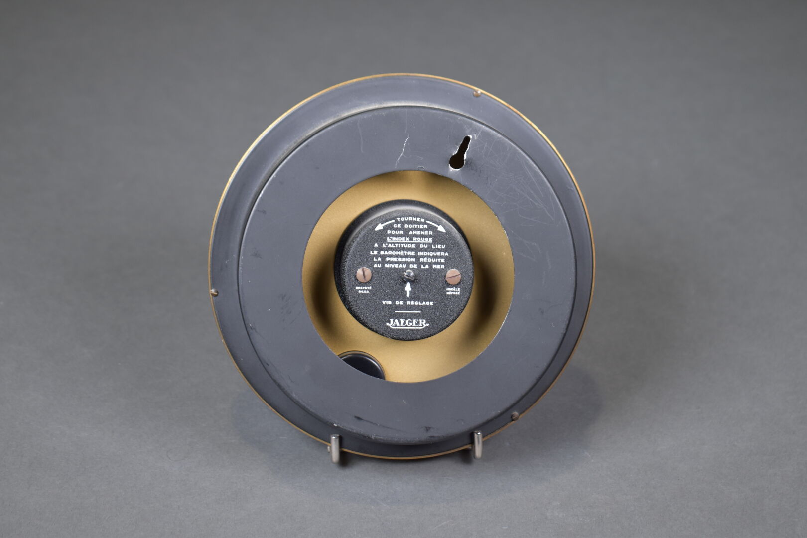 JAEGER. Baromètre circulaire en laiton. Vers 1960. Diam. : 16 cm.