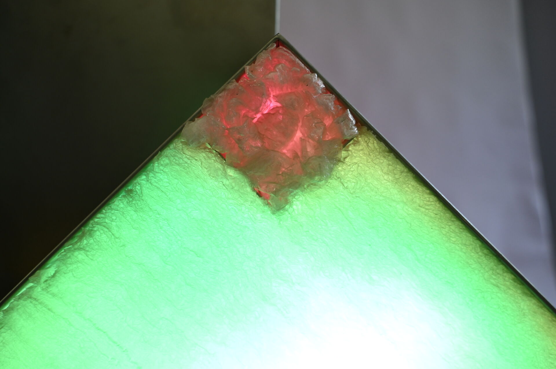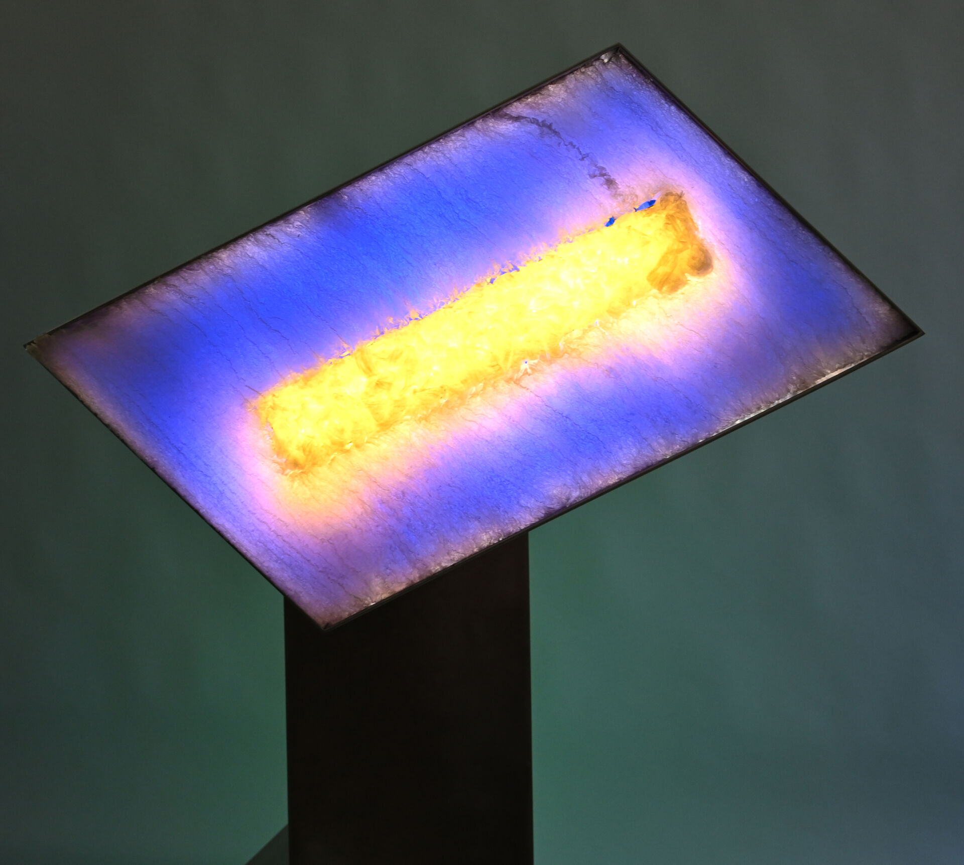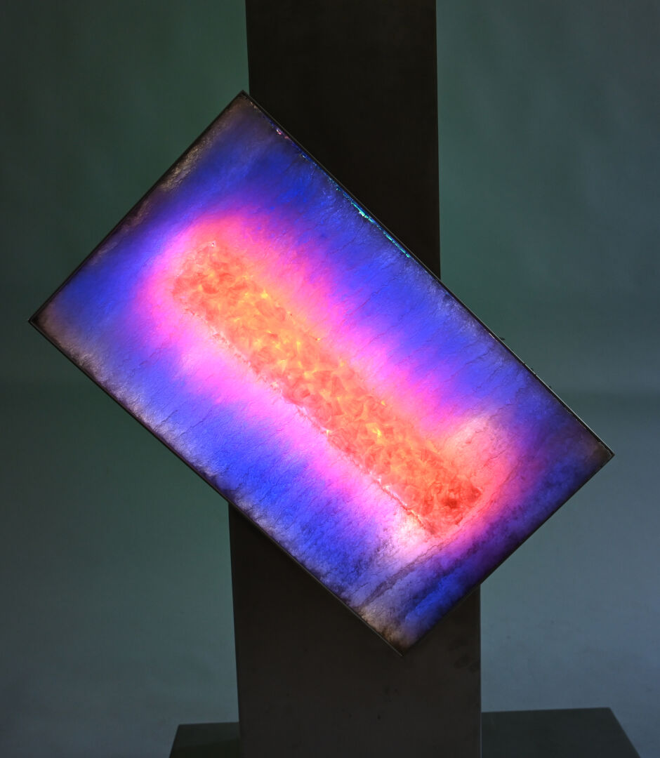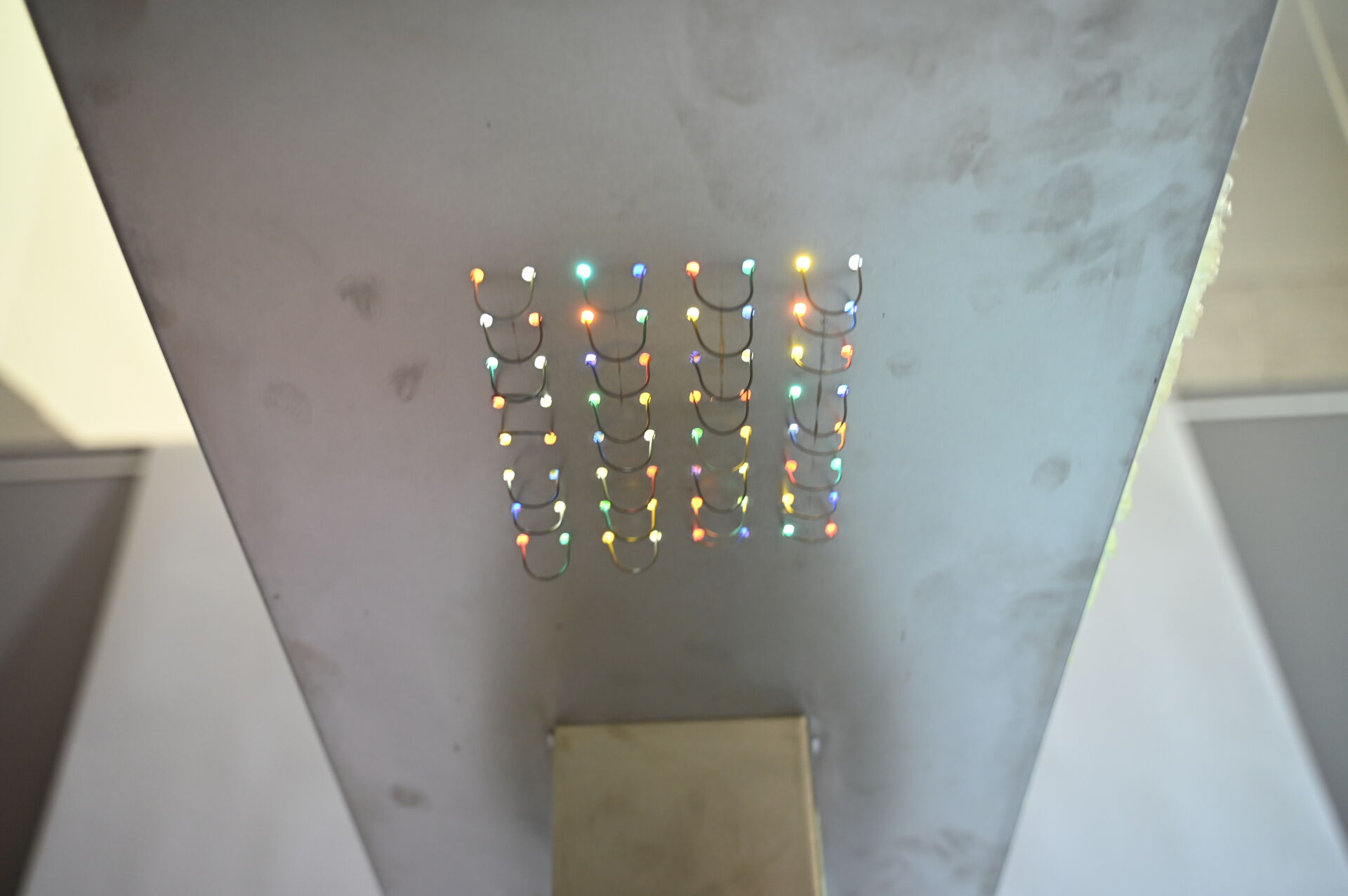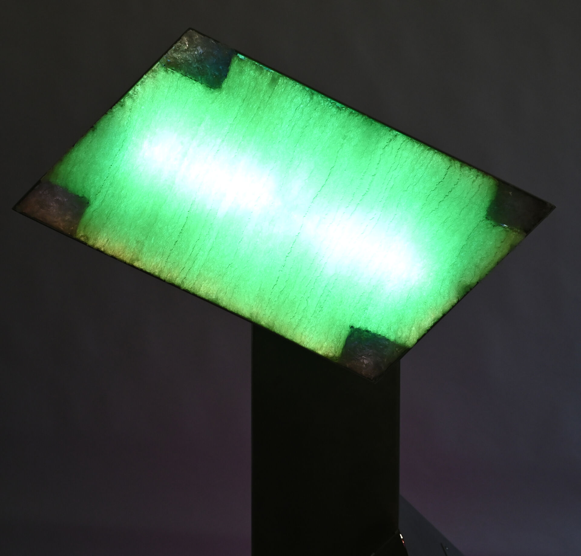 Jean-Claude CAPMARTY (XXe siècle). Grande sculpture lumineuse en métal et plastique. Signée. Haut. : 198 cm – Larg. : 100 cm – Prof. : 40 cm.