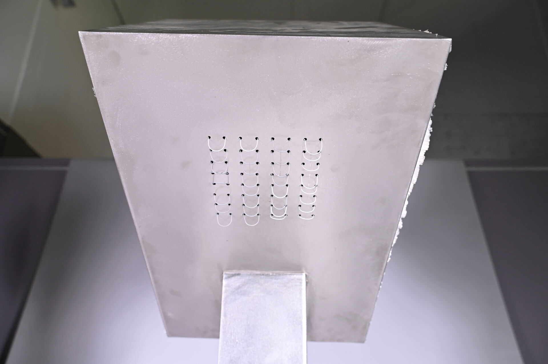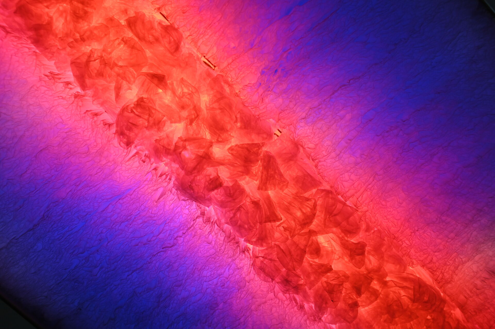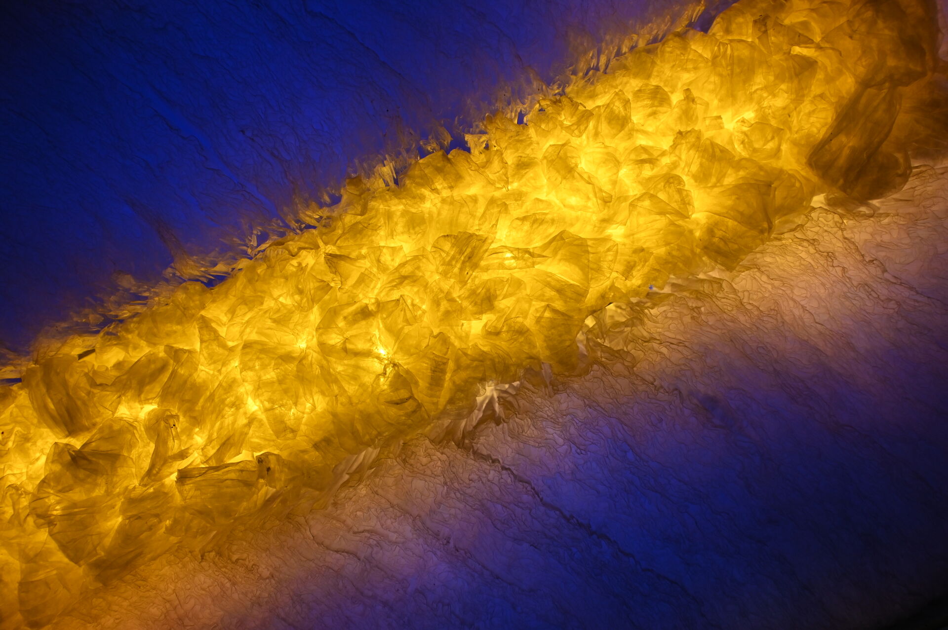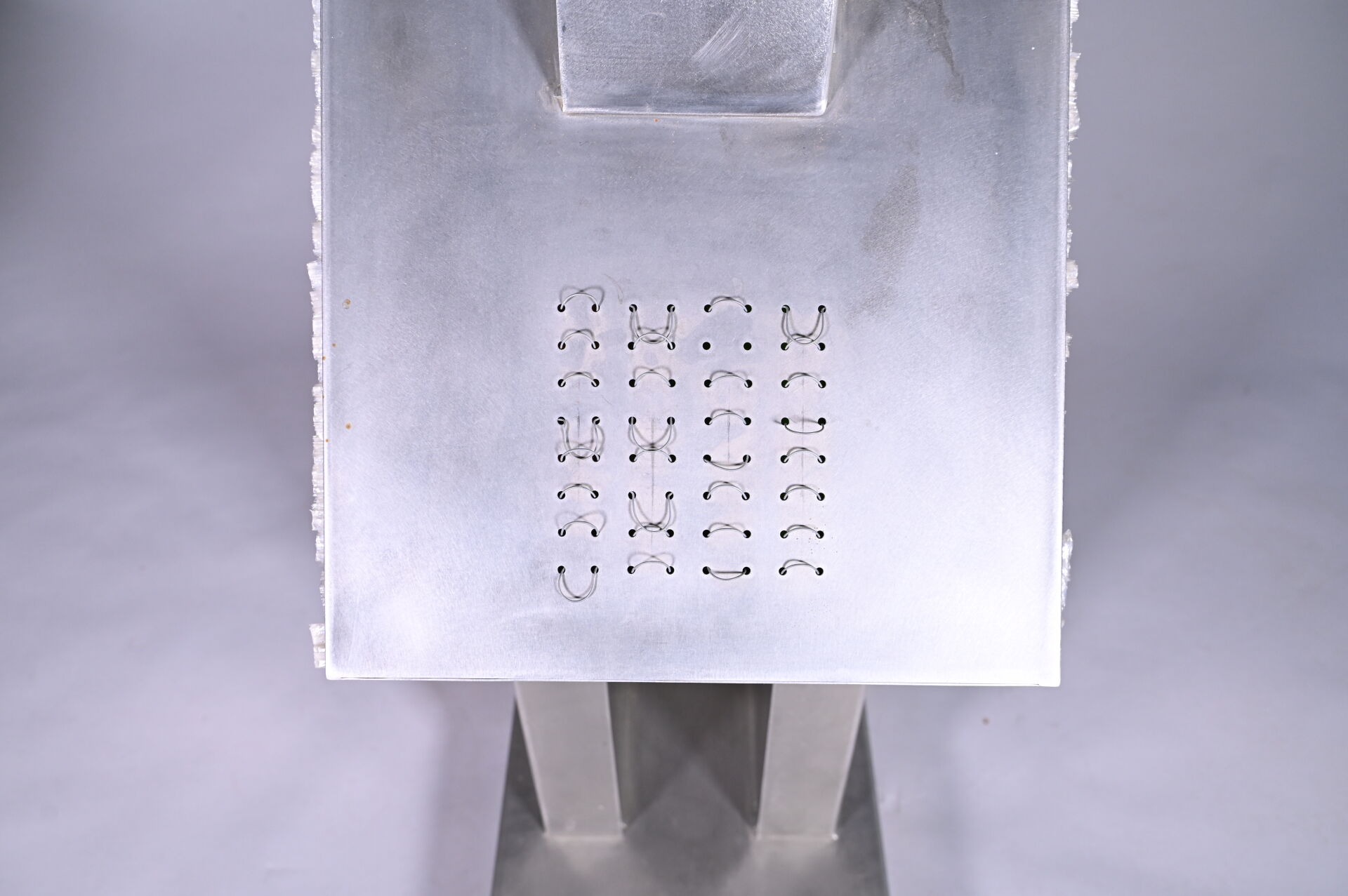 Jean-Claude CAPMARTY (XXe siècle). Grande sculpture lumineuse en métal et plastique. Signée. Haut. : 198 cm – Larg. : 100 cm – Prof. : 40 cm.