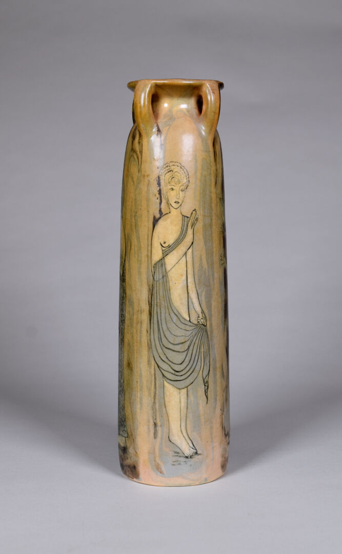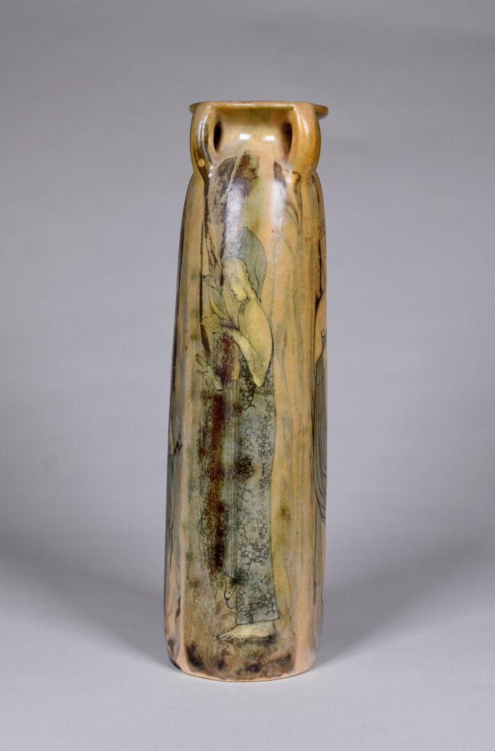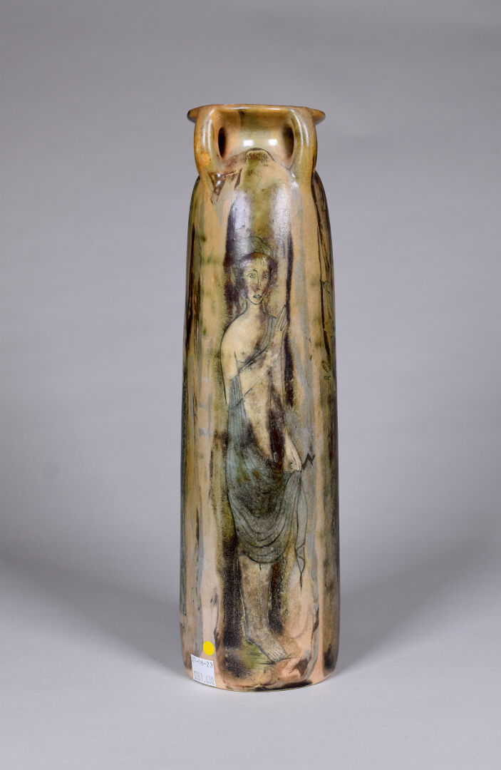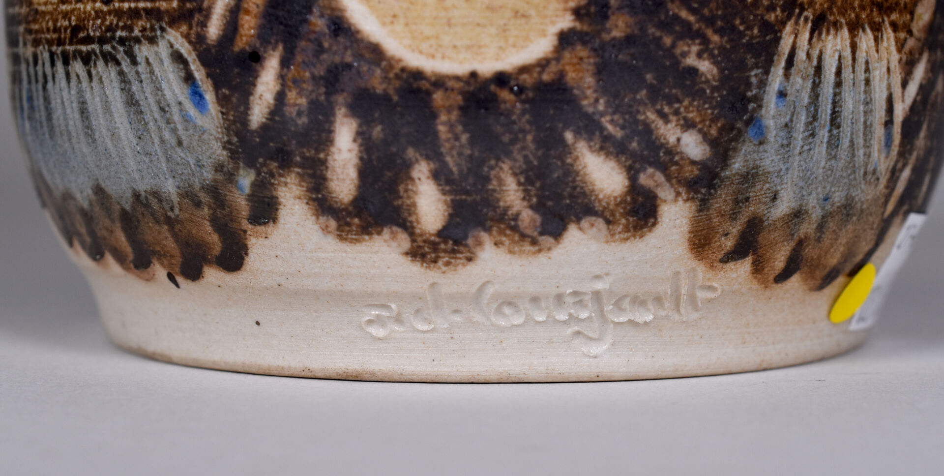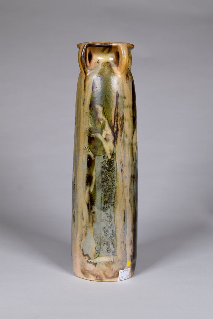 Jean Claude COURJAULT (né en 1962). Verseuse en céramique émaillée de motifs géométriques. Signée au dessous. Haut. : 22 cm. On joint un vase signé LENUZZA. Haut. : 34 cm.