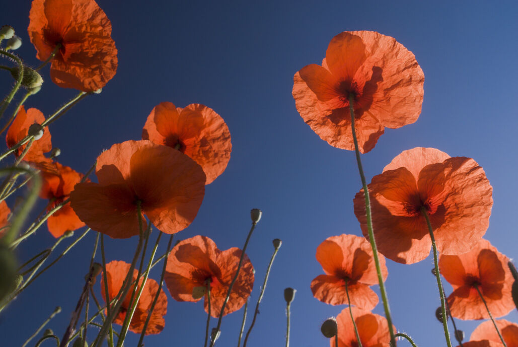 Jean-Claude TEYSSIER (XXe-XXIe siècle). Coquelicot sous un ciel bleu. Impression sur bâche. 160x 250 cm.
