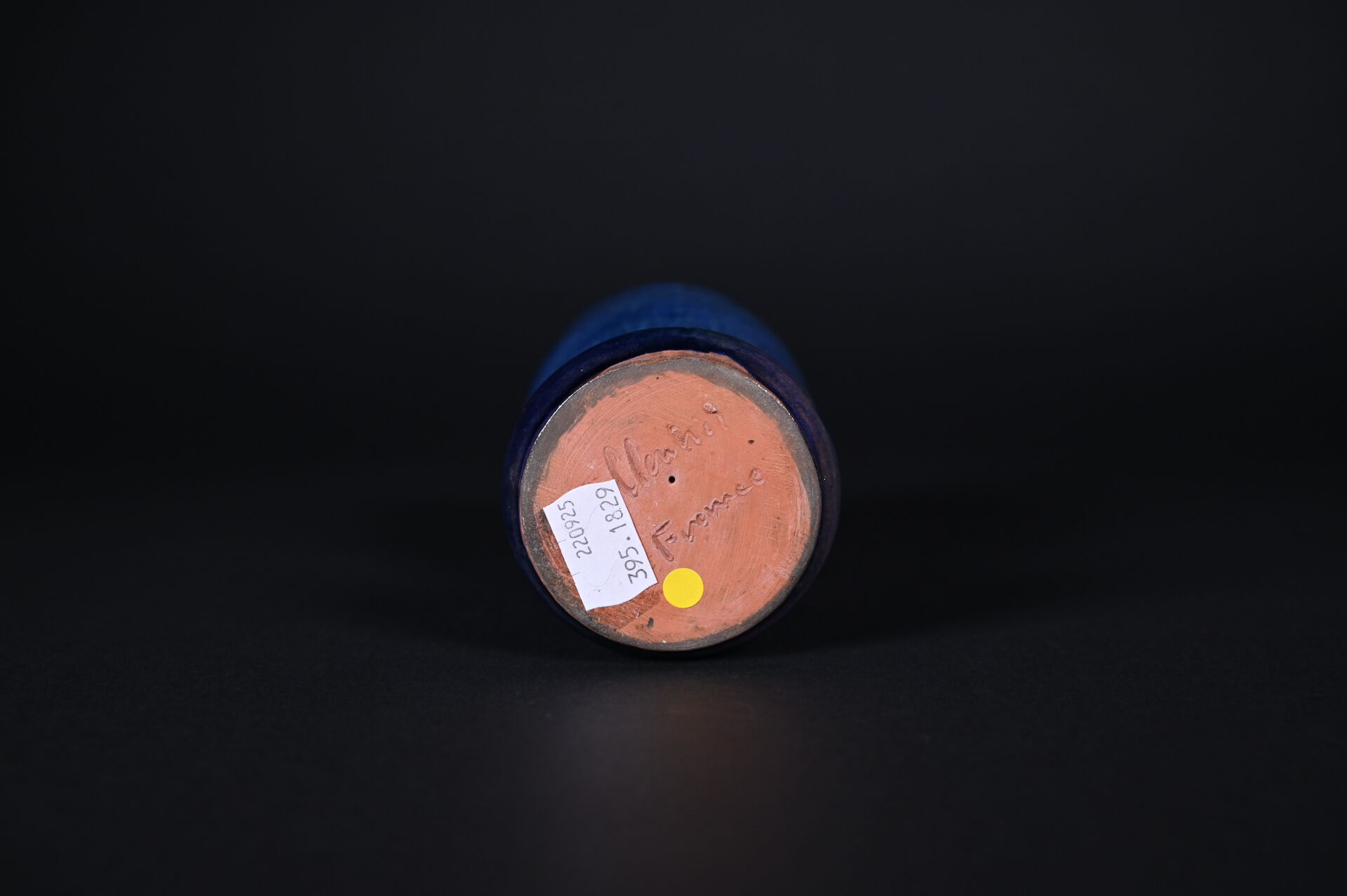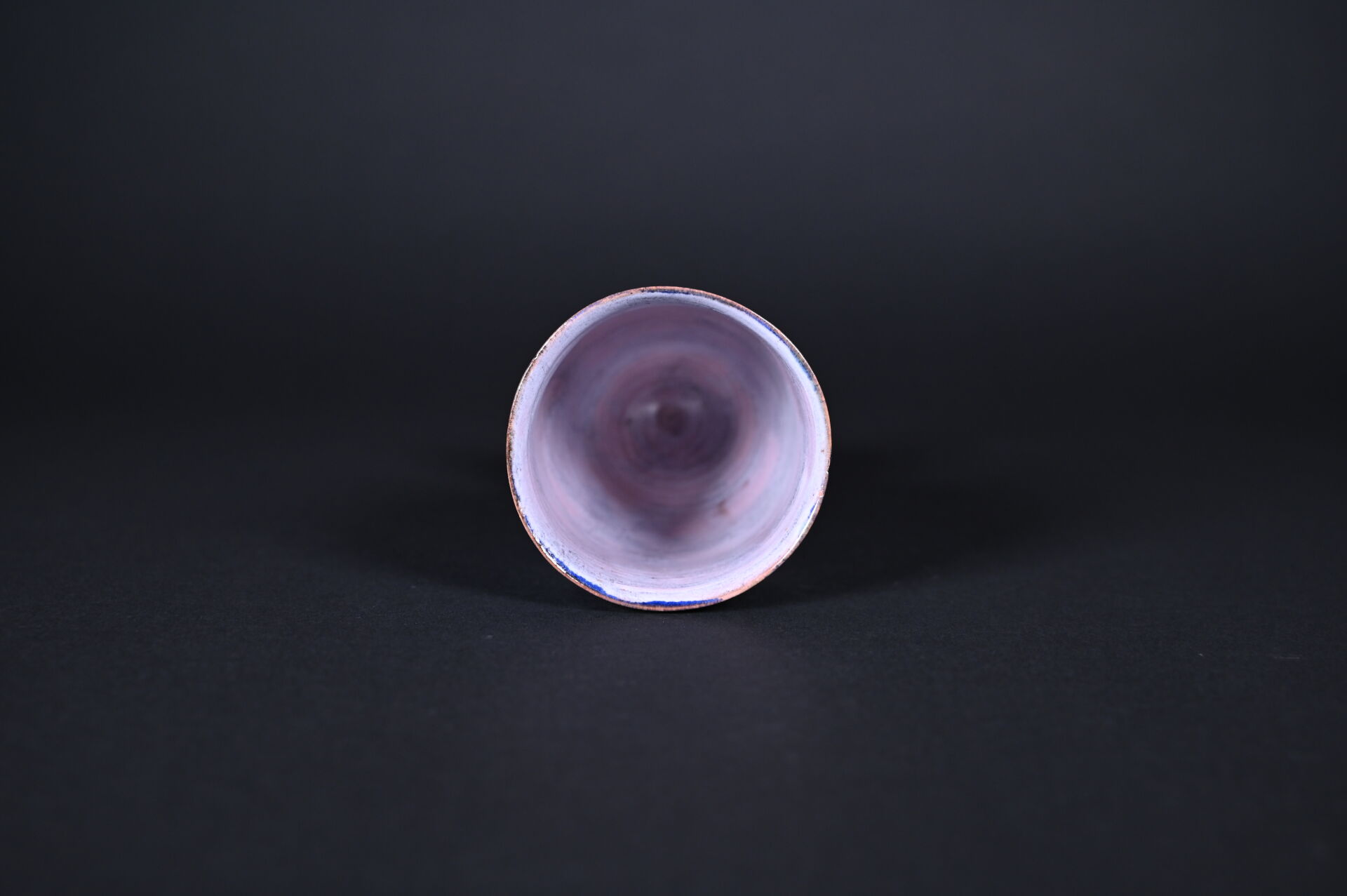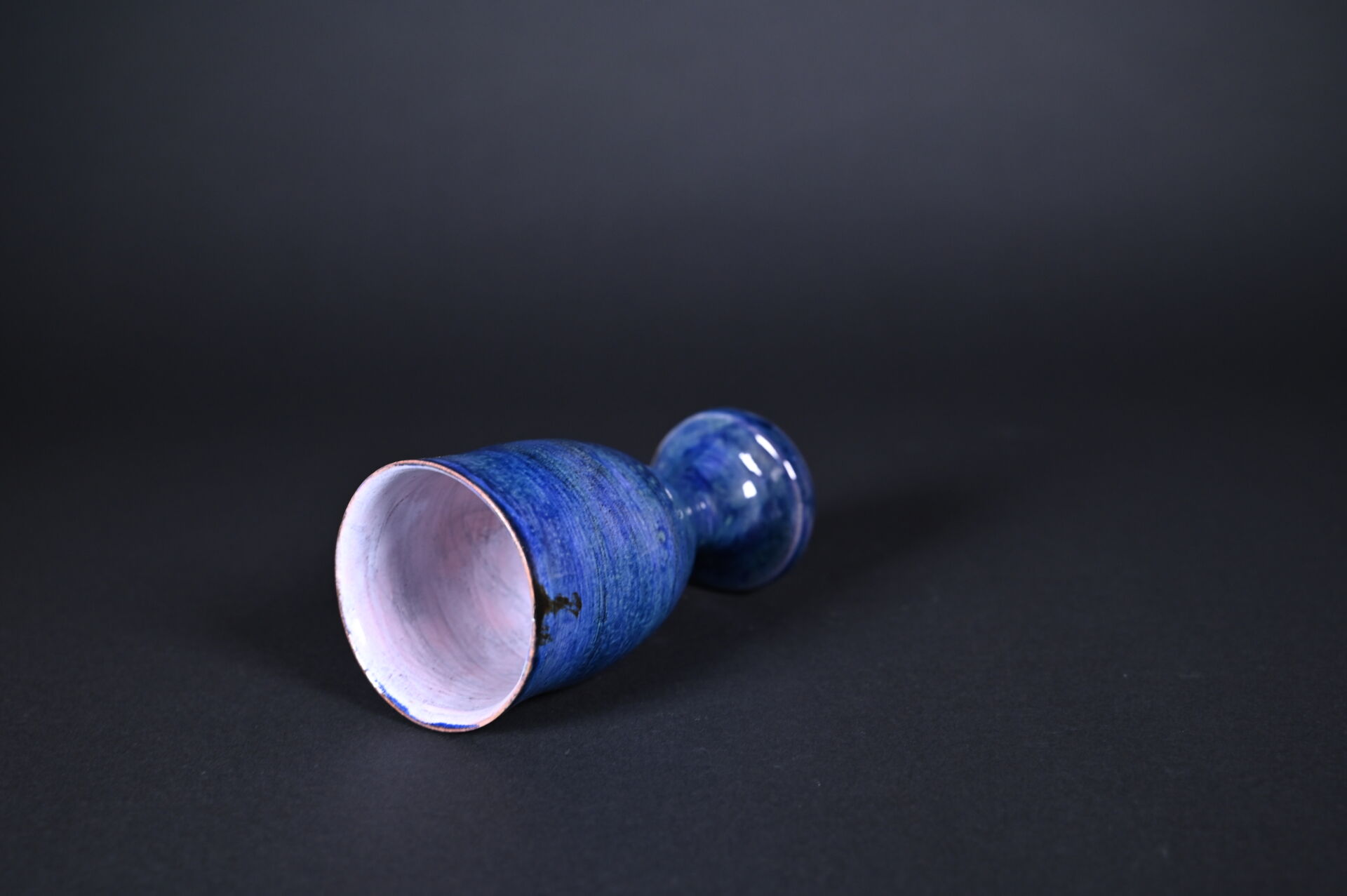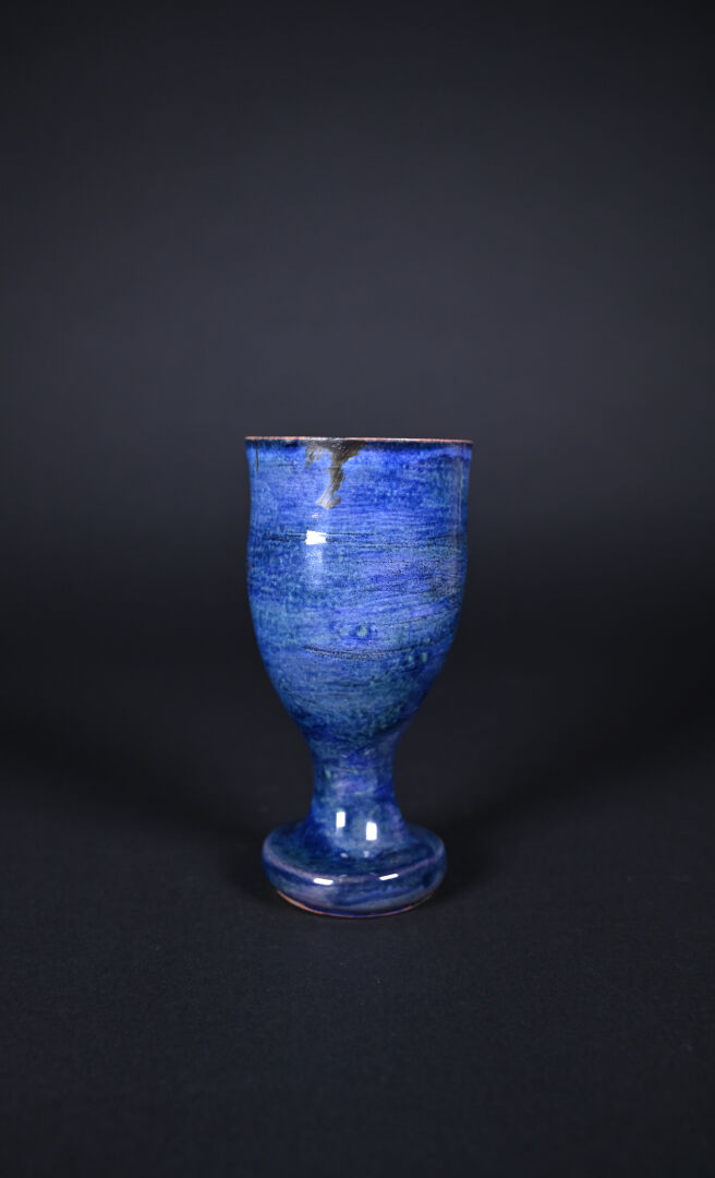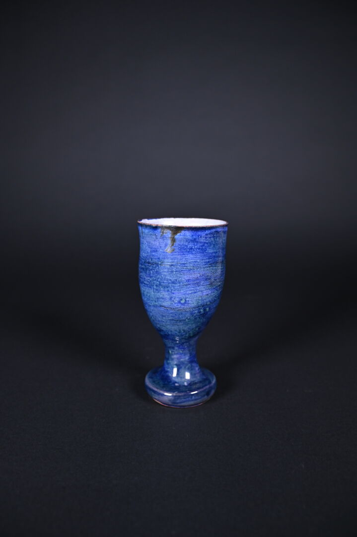 Jean CLOUTIER (1930-2015) et Robert CLOUTIER (1930-2008). Coupe sur piédouche en céramique émaillée bleu à l’extérieur et rose à l’intérieur. Signée au dessous. Haut. : 17 cm.