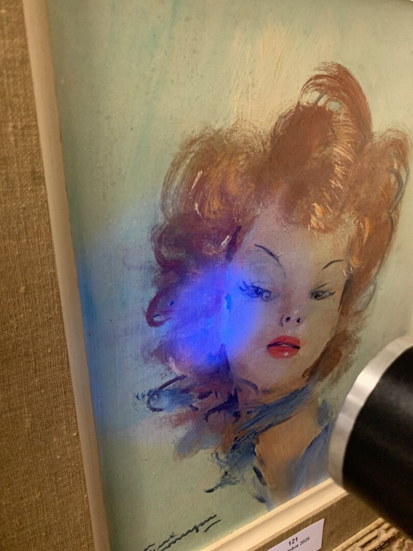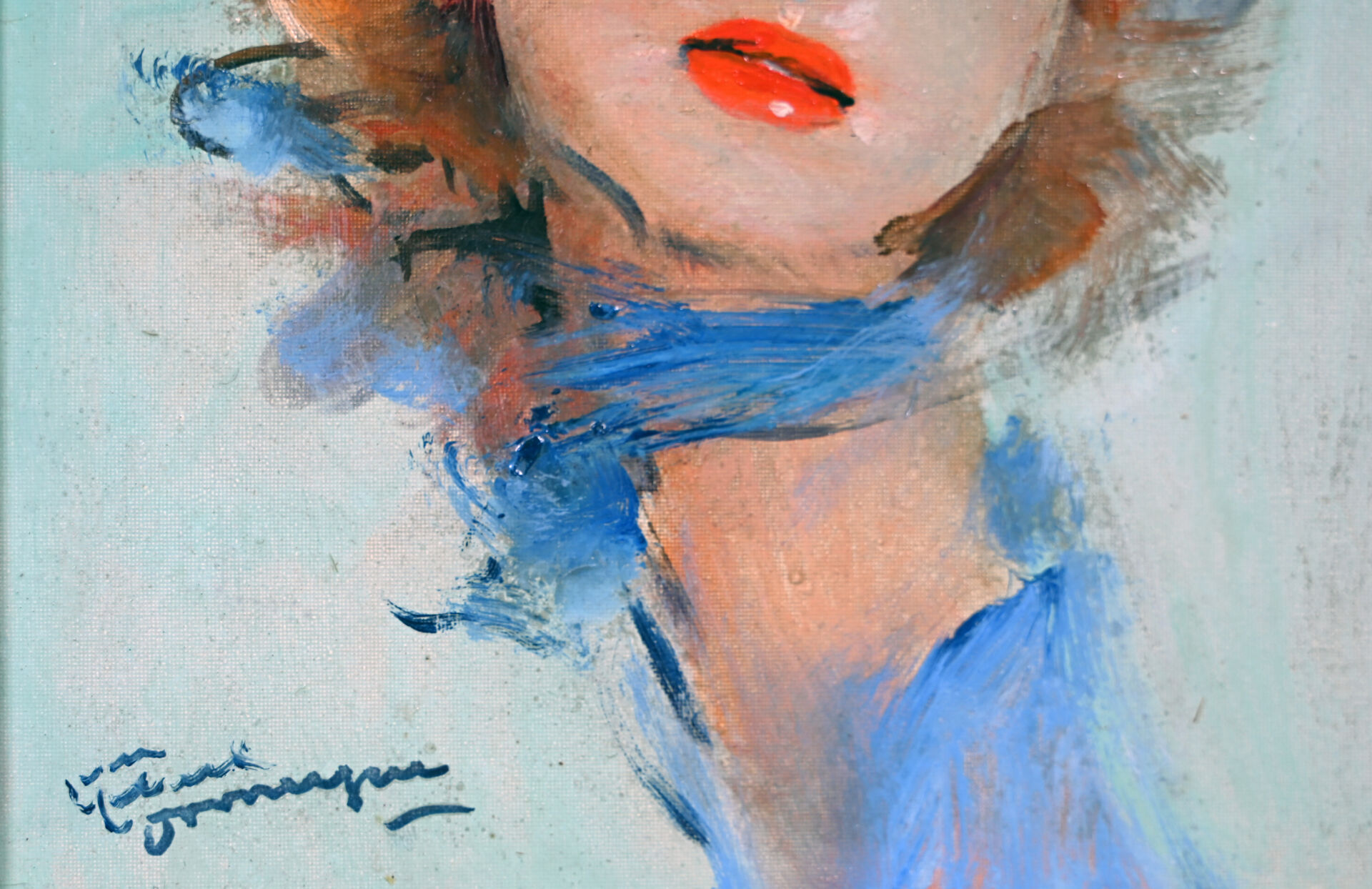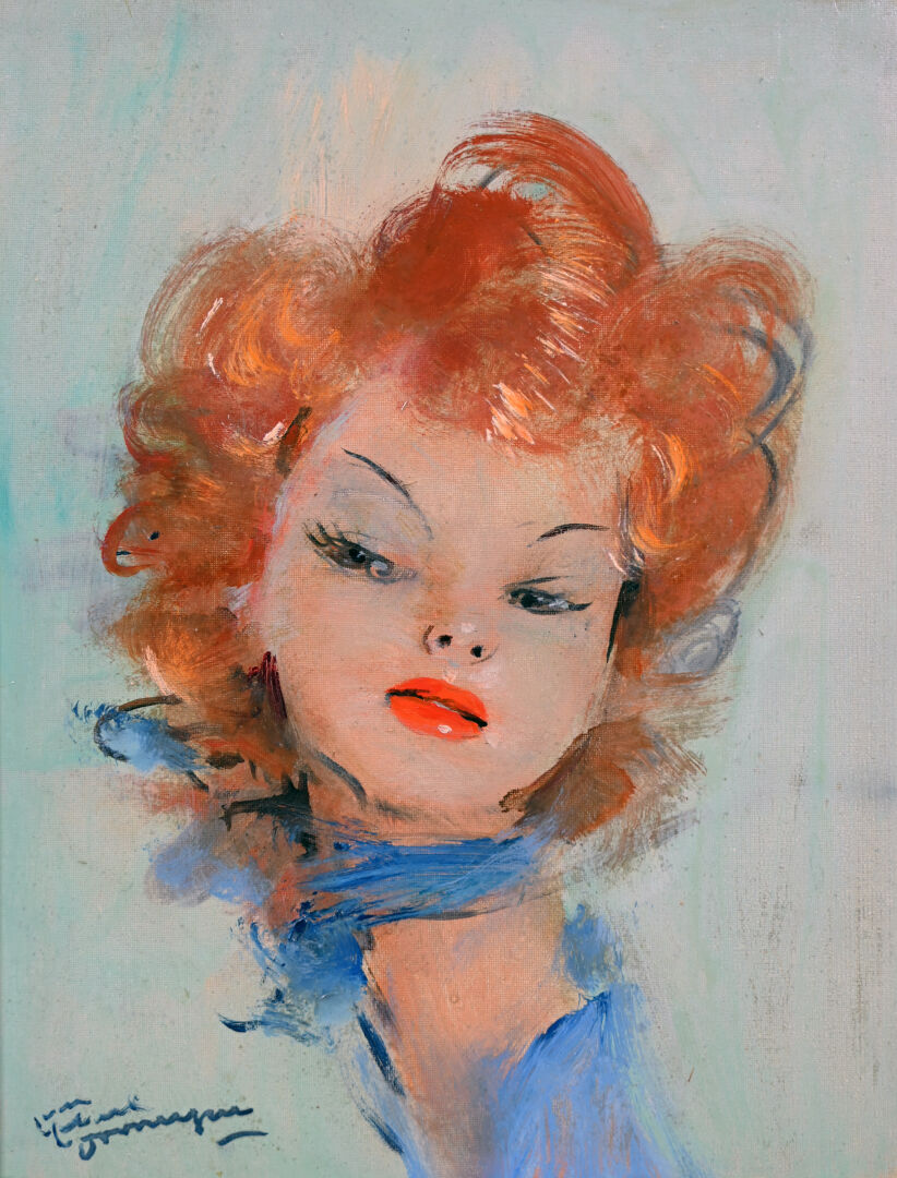 Jean Gabriel DOMERGUE (1889 – 1962) Portrait de jeune femme rousse. Huile sur isorel signée en bas à gauche (un petit repeint). 24 x 19 cm.