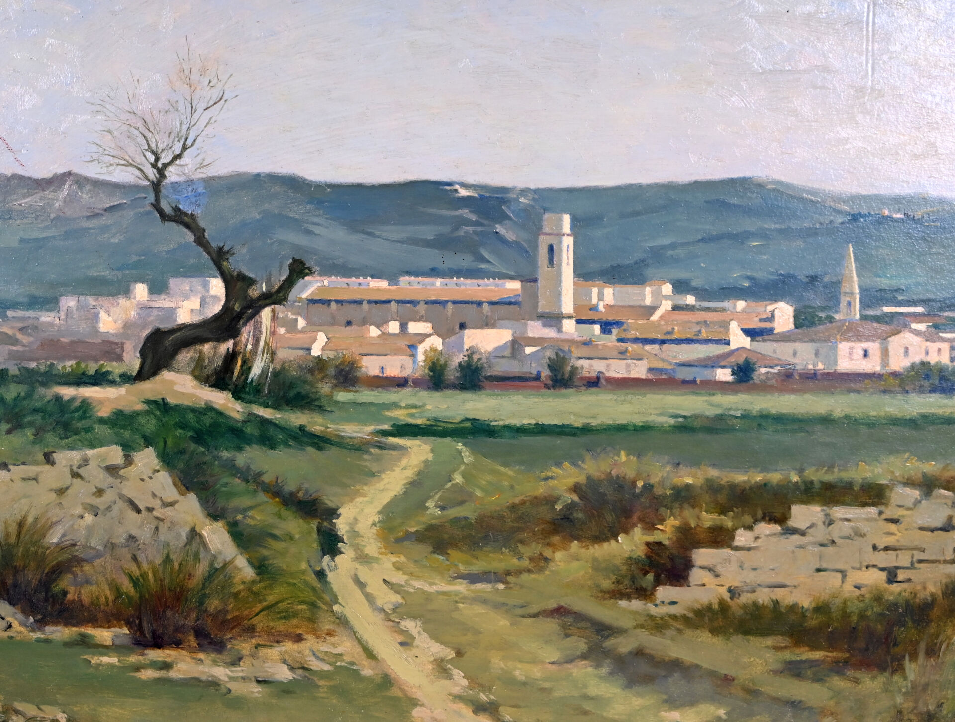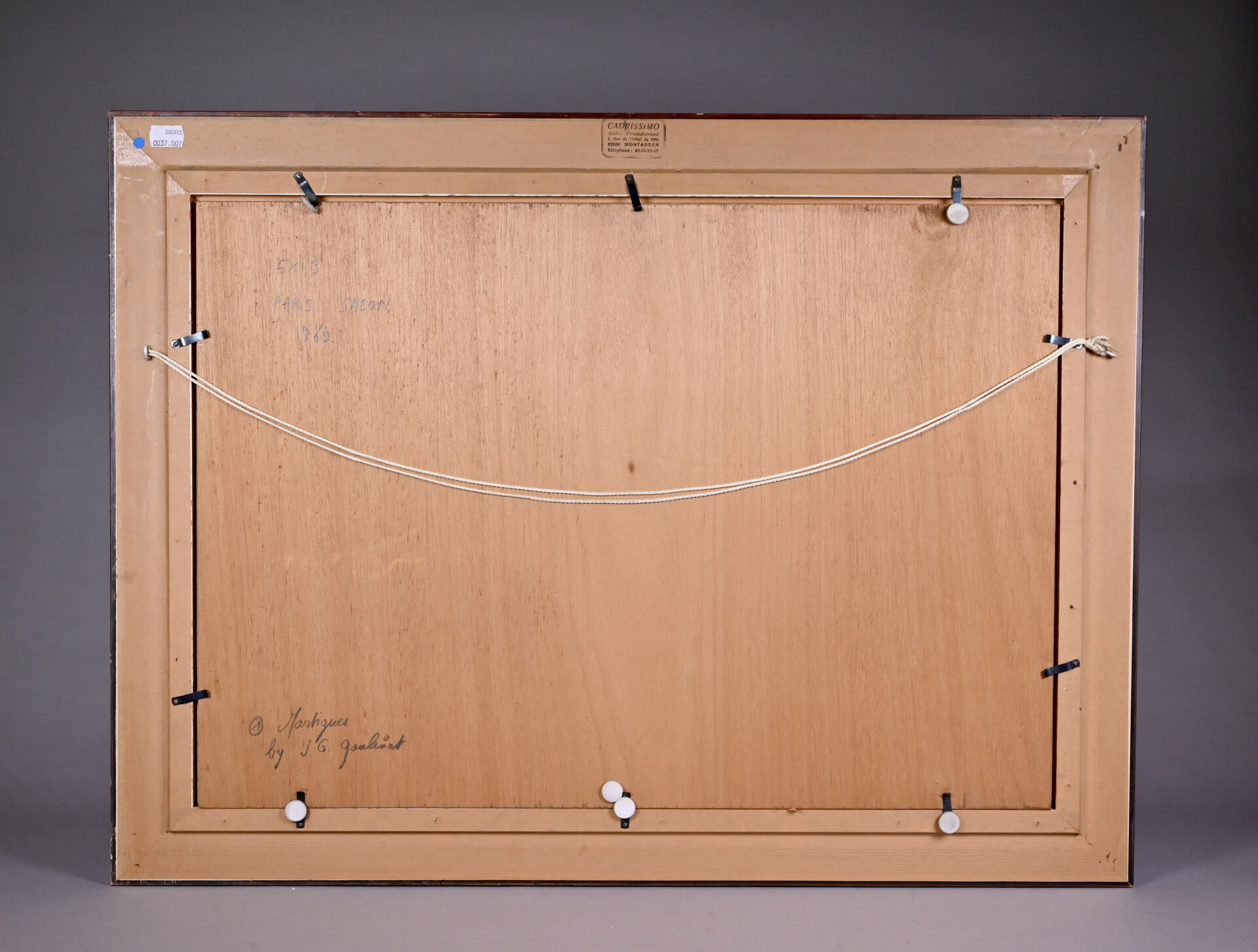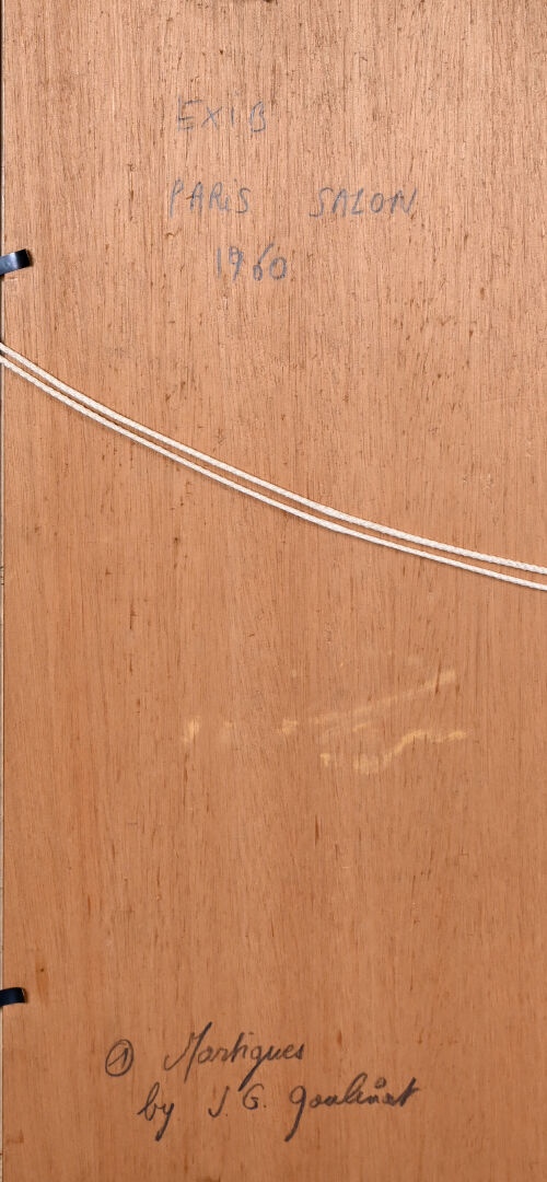 Huile sur panneau signée en bas vers la gauche, contresignée, et mention « Exib Paris Salon 1960 » au dos (quelques frottements).