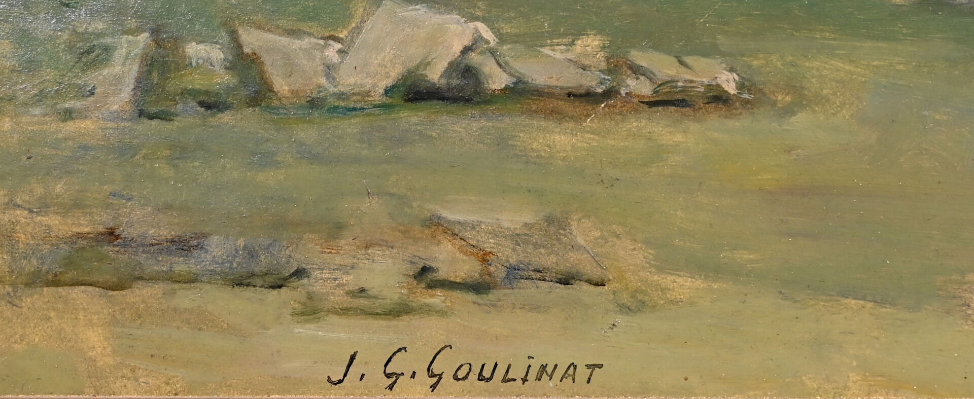 Jean Gabriel GOULINAT (1883 – 1972). » Martigues ». Huile sur panneau signée en bas vers la gauche, contresignée, et mention « Exib Paris Salon 1960 » au dos (quelques frottements). 46 x 65 cm.