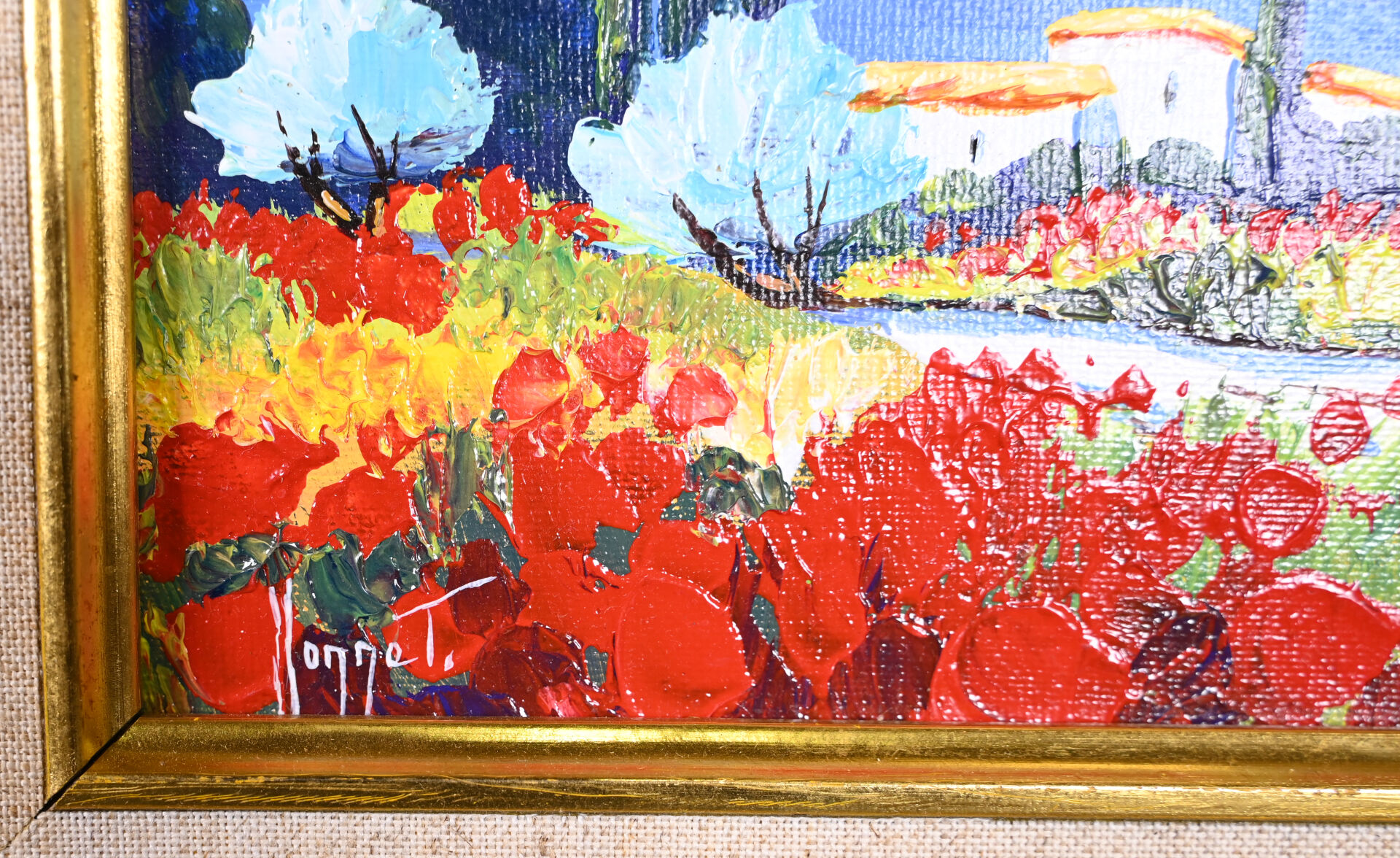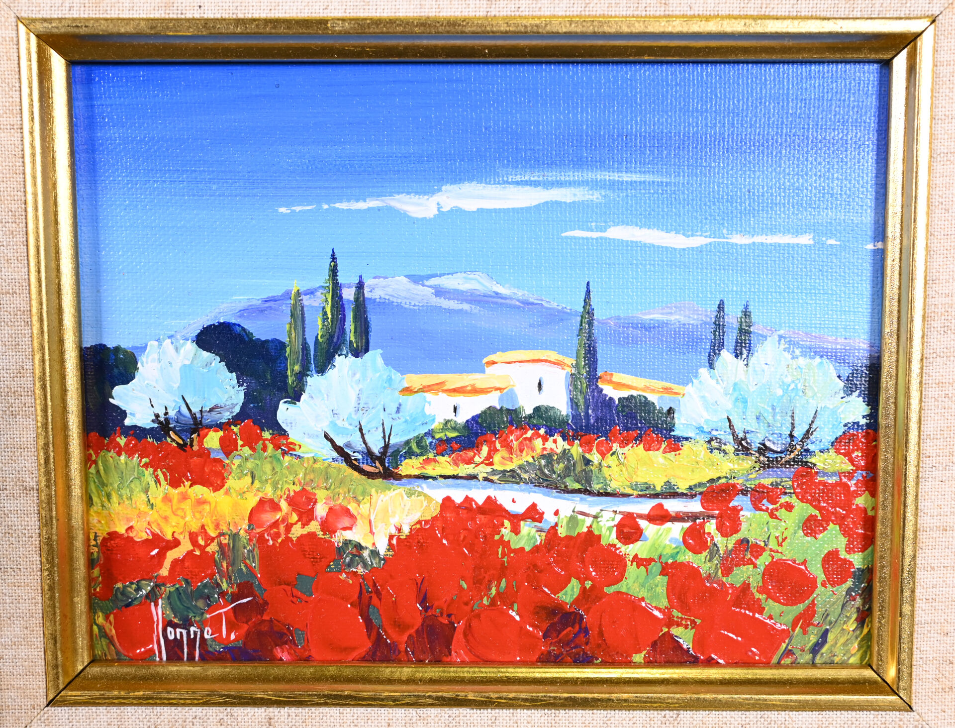 Jean-Louis HONNET (1957-2017). Paysage de Provence aux coquelicots. Huile sur toile signée en bas à gauche. 14 x 18 cm.