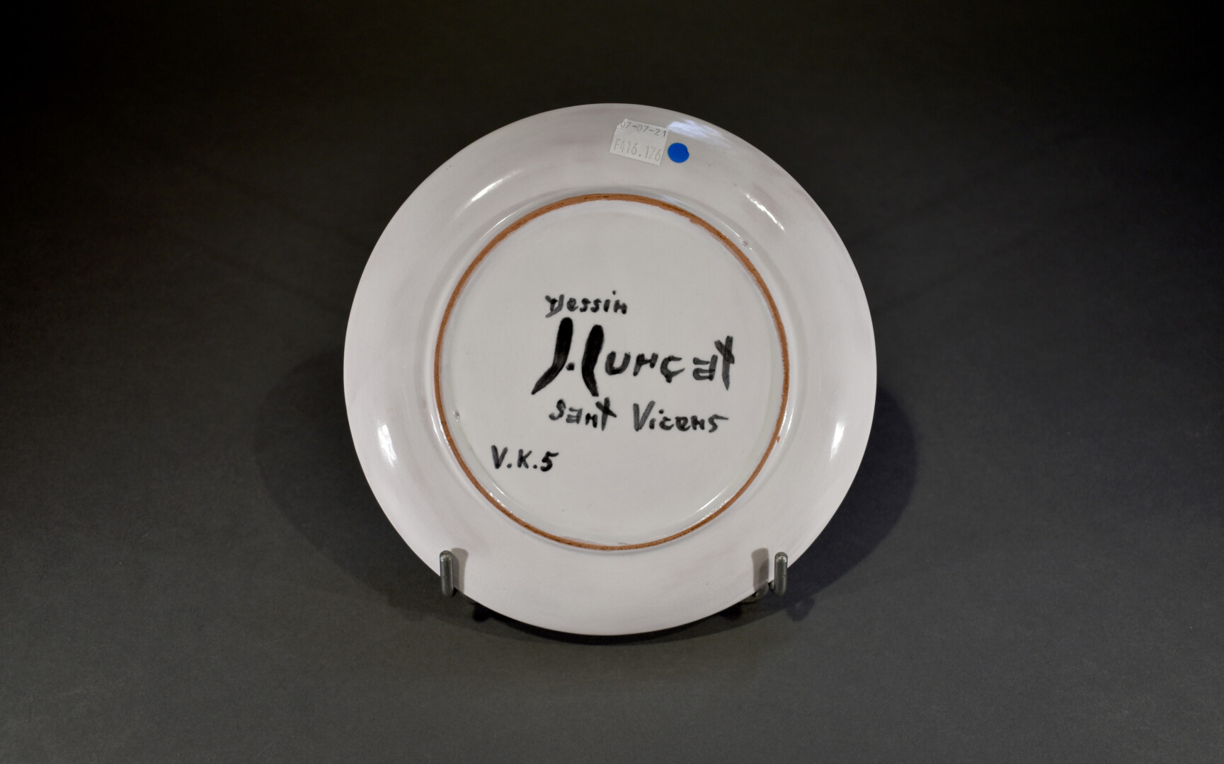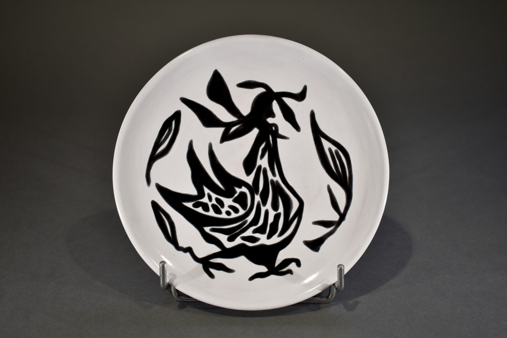 Jean LURÇAT (1892-1966). Assiette en céramique à décor émaillé en noir d’un coq sur fond crème. Marquée au dos Sant Vicens. Diam. : 21 cm.