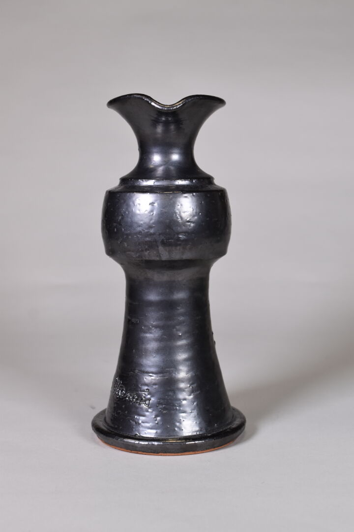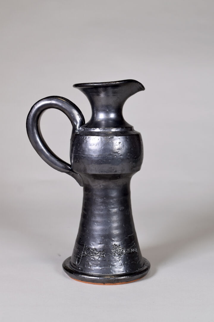 Jean MARAIS (1913 – 1998). Verseuse en céramique émaillée noir métallique. Signée. Haut. : 24 cm.