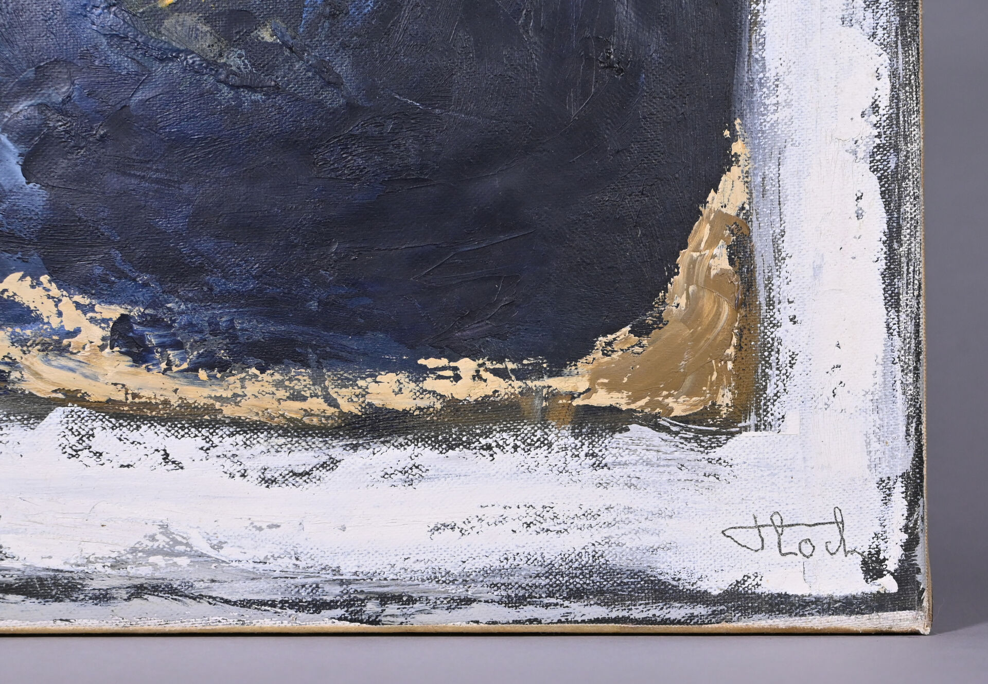 Biographie de l’artiste : « Jean-Pierre FLOCH est né le 19 mai 1937 à Toulon. Dès l’âge de trois ans ses parents partent pour Dakar au Sénégal. Les couleurs fortes de l’Afrique le marquent de façon définitive et il commence à peindre à 14 ans. A 20 ans, il s’engage sur un coup de tête dans l’armée de l’air, sillonne l’ Afrique et rencontre sa première épouse Noëlle au Maroc en 1958. Sa carrière d’aviateur l’amène finalement à s’établir avec son épouse et ses 4 enfants en région toulousaine en 1966. Dès 1974, il se consacre entièrement à la peinture. Ebloui par tous les grands peintres, il a une grande admiration pour Rembrandt et Van Gogh et se passionne pour l’histoire de l’art. Sa peinture commence naturellement par les compositions figuratives puis évolue rapidement vers le cubisme sous l’influence des grands peintre tels Kandinski, Miro,Braque… Dans les années 80, le grand « choc » de la découverte de l’oeuvre de Nicolas de Staêl le conduit à l’art abstrait qui devient son expression picturale. Il se passionne pour Estève, Bram Van Velde, Poliakoff, Vierra da Silva, Bissières, Sonia Delaunay, Polizkoff, Soulages et Hartung et tant d’autres grands peintres dont il admire les oeuvres. Il participe avec succès à un certain nombre de salons où il obtient des distinctions. Mais c’est dans son atelier qu’il se sent à l’aise et ne se prête pas facilement aux mondanités des vernissages. Il expose localement et devient sociétaire de la Société des Artistes Méridionaux dès 1986. Il y présentera ses oeuvres jusqu’à la fin de sa vie. Il s’établit dans les années 1990 à Cerbère pres de Collioure. Peintre du Sud et de la Méditerrannée, il produira plus de 400 oeuvres, majoritairement des huiles sur toile, ainsi que des pastels dont il affectionnait la technique. Il est entouré d’amis artistes, vend ses toiles lui-même. La peinture rythme toute sa vie et il pratique la natation quasiment tous les jours. Il s »éteint le 11 juin 2015 à Cerbère et laisse une oeuvre riche en couleurs, puissante et magnétique. »