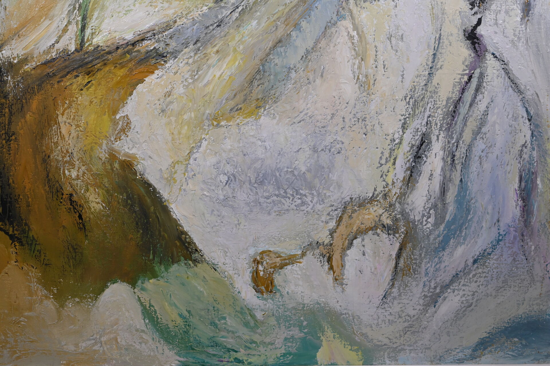 Biographie de l’artiste : « Jean-Pierre FLOCH est né le 19 mai 1937 à Toulon. Dès l’âge de trois ans ses parents partent pour Dakar au Sénégal. Les couleurs fortes de l’Afrique le marquent de façon définitive et il commence à peindre à 14 ans. A 20 ans, il s’engage sur un coup de tête dans l’armée de l’air, sillonne l’ Afrique et rencontre sa première épouse Noëlle au Maroc en 1958. Sa carrière d’aviateur l’amène finalement à s’établir avec son épouse et ses 4 enfants en région toulousaine en 1966. Dès 1974, il se consacre entièrement à la peinture. Ebloui par tous les grands peintres, il a une grande admiration pour Rembrandt et Van Gogh et se passionne pour l’histoire de l’art. Sa peinture commence naturellement par les compositions figuratives puis évolue rapidement vers le cubisme sous l’influence des grands peintre tels Kandinski, Miro,Braque… Dans les années 80, le grand « choc » de la découverte de l’oeuvre de Nicolas de Staêl le conduit à l’art abstrait qui devient son expression picturale. Il se passionne pour Estève, Bram Van Velde, Poliakoff, Vierra da Silva, Bissières, Sonia Delaunay, Polizkoff, Soulages et Hartung et tant d’autres grands peintres dont il admire les oeuvres. Il participe avec succès à un certain nombre de salons où il obtient des distinctions. Mais c’est dans son atelier qu’il se sent à l’aise et ne se prête pas facilement aux mondanités des vernissages. Il expose localement et devient sociétaire de la Société des Artistes Méridionaux dès 1986. Il y présentera ses oeuvres jusqu’à la fin de sa vie. Il s’établit dans les années 1990 à Cerbère pres de Collioure. Peintre du Sud et de la Méditerrannée, il produira plus de 400 oeuvres, majoritairement des huiles sur toile, ainsi que des pastels dont il affectionnait la technique. Il est entouré d’amis artistes, vend ses toiles lui-même. La peinture rythme toute sa vie et il pratique la natation quasiment tous les jours. Il s »éteint le 11 juin 2015 à Cerbère et laisse une oeuvre riche en couleurs, puissante et magnétique. »
