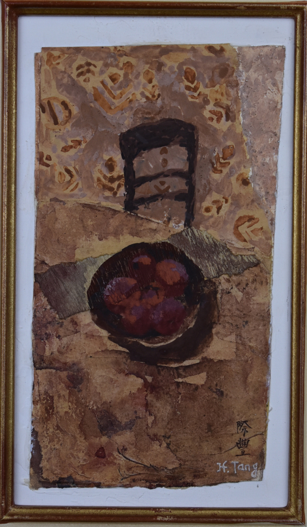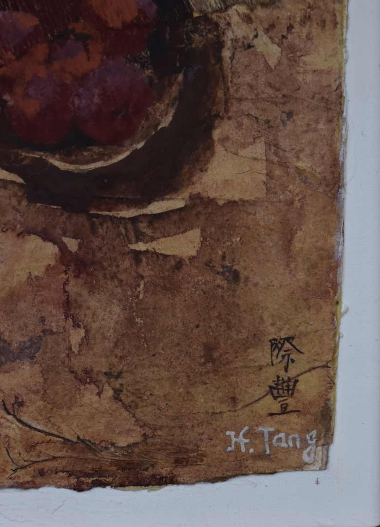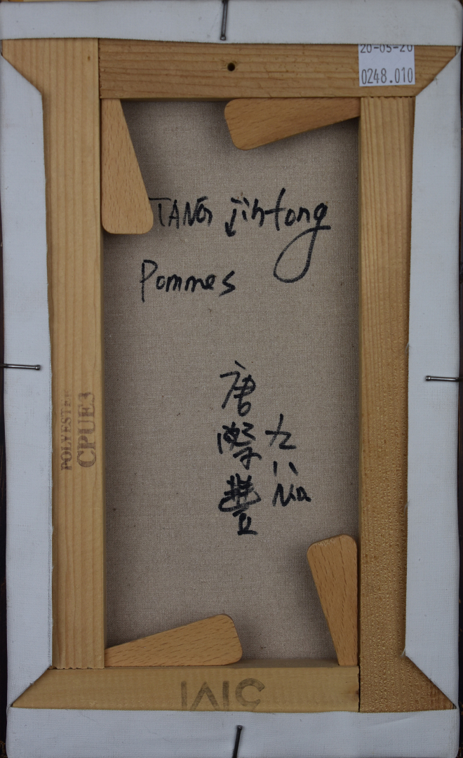 JITANG ? Pommes. Technique mixte signée en bas à droite, contre signée et titrée au dos. 27 x 16 cm.