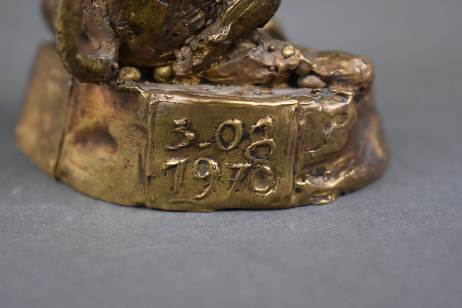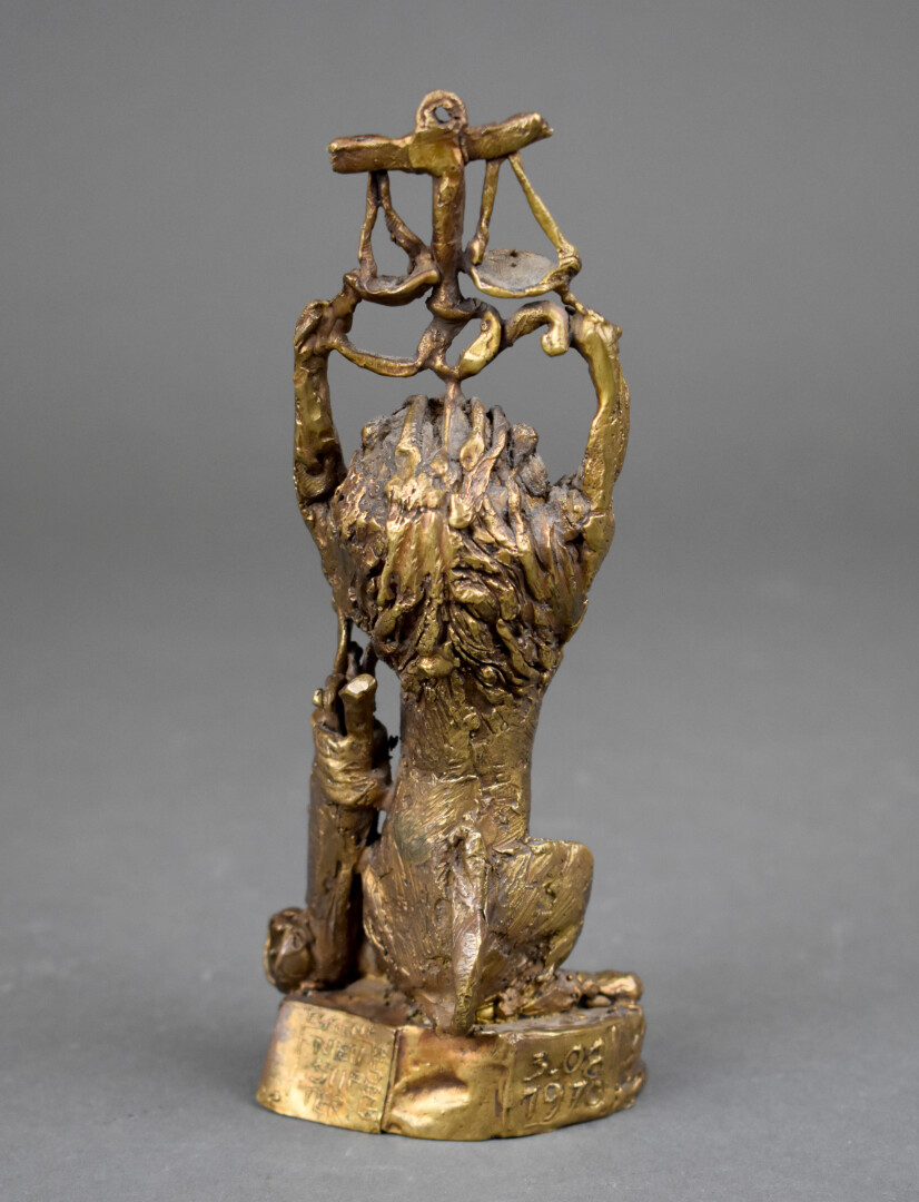 Josef Michael NEUSTIFTER (XXe siècle). Lion tenant la balance de la justice. Bronze, signé à la base. Haut. : 19,7 cm.