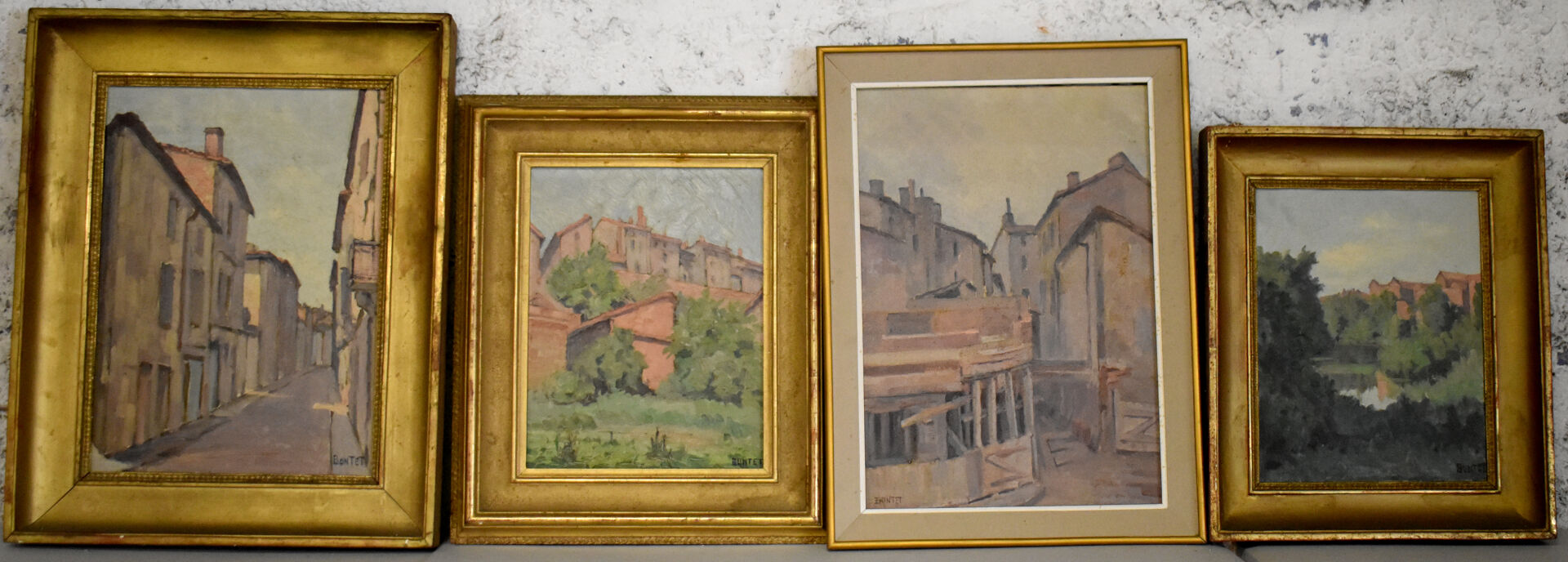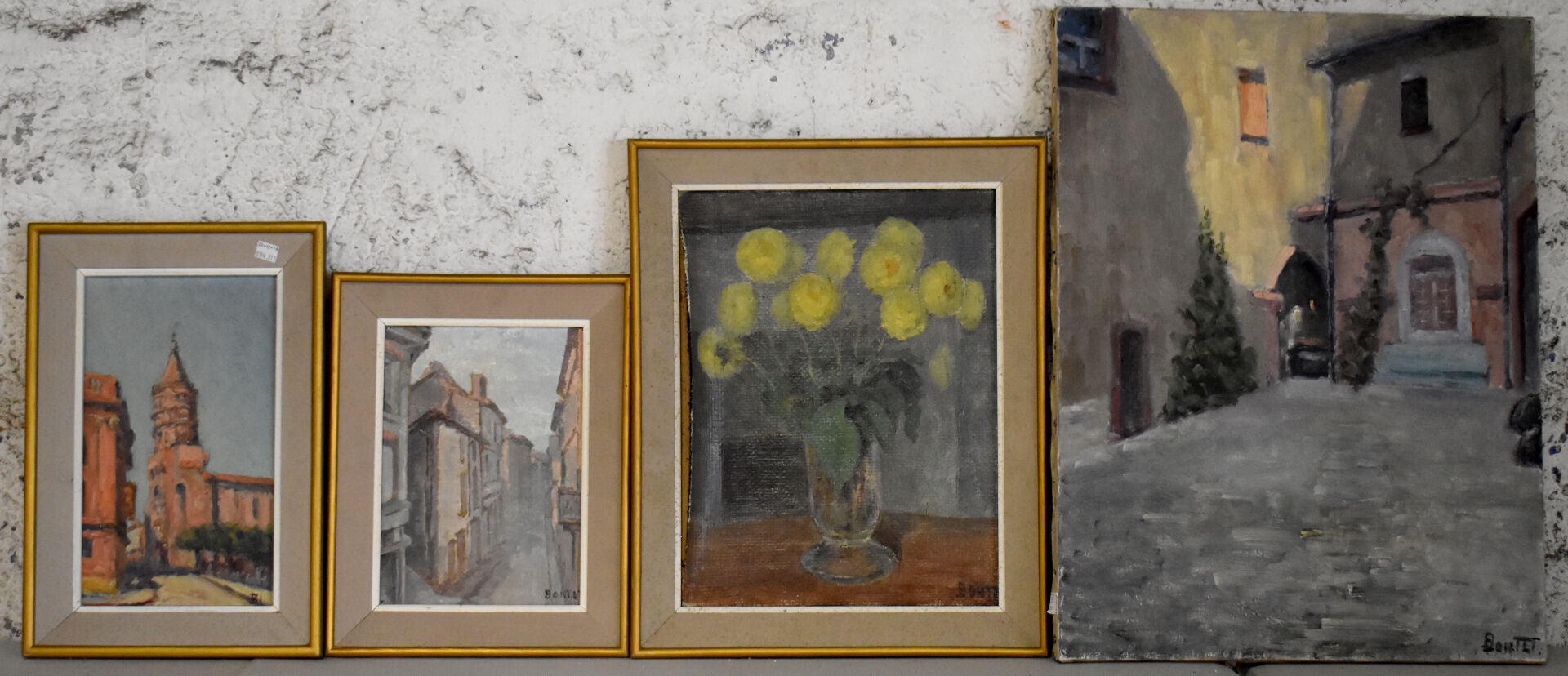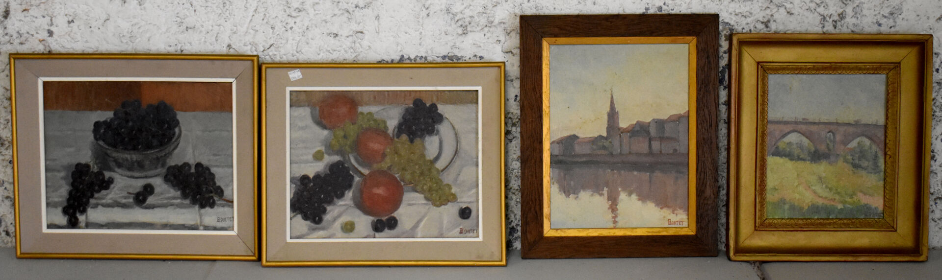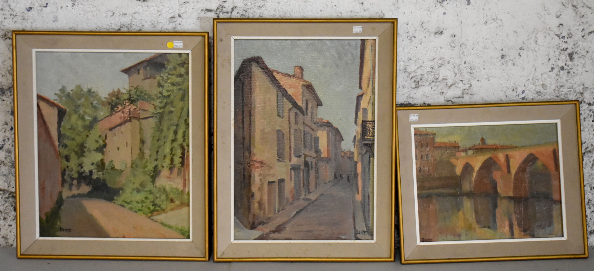 Joseph BONTE (XIXe – XXe siècle). Suite de 23 huiles, la plus part représentant la ville de Montauban et ses alentours. On joint 17 gravures de mode et 18 cadres en bois et bois doré.