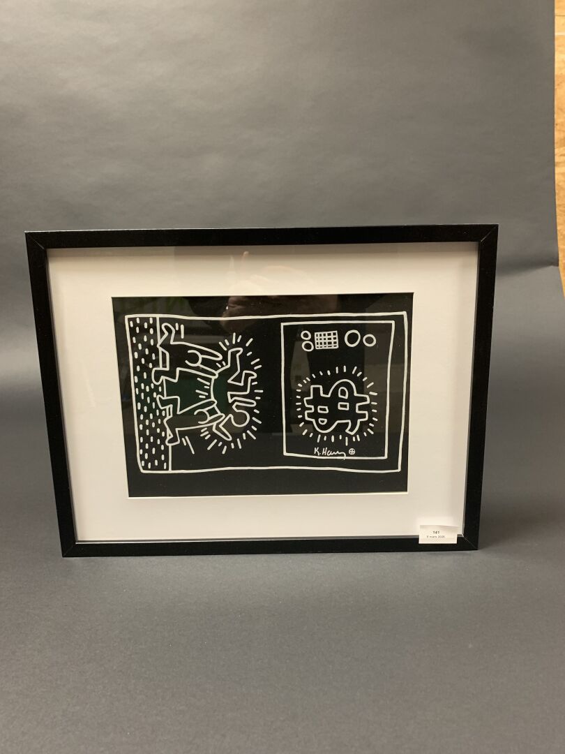 Keith HARING (1958-1990). Sans titre. Gouache sur papier noir, signée. Au dos tampon de Julia GRUEN (fondation Keith Haring). 20 x 28 cm.