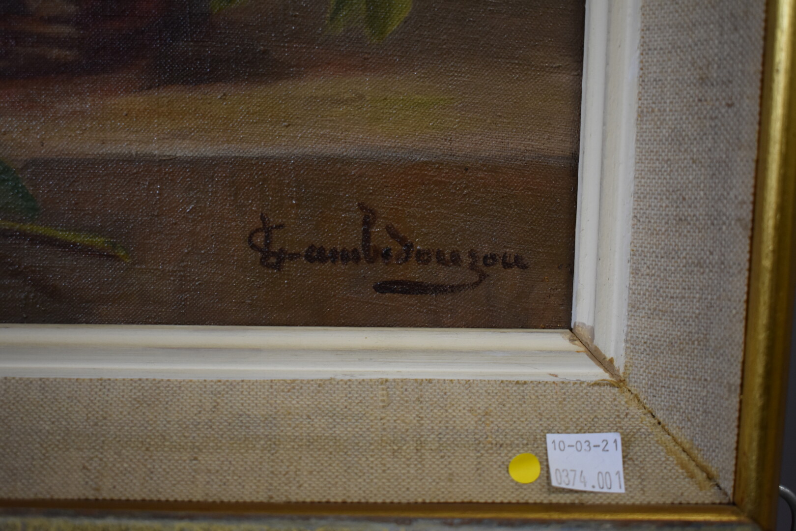 L. COMBEDOUZOU (XIXe-XXe siècle). Nature morte aux cerises et abricots. Huile sur toile signée en bas à droite. 33,5 x 50 cm.