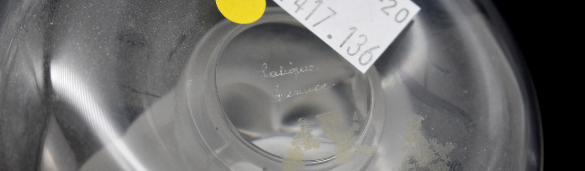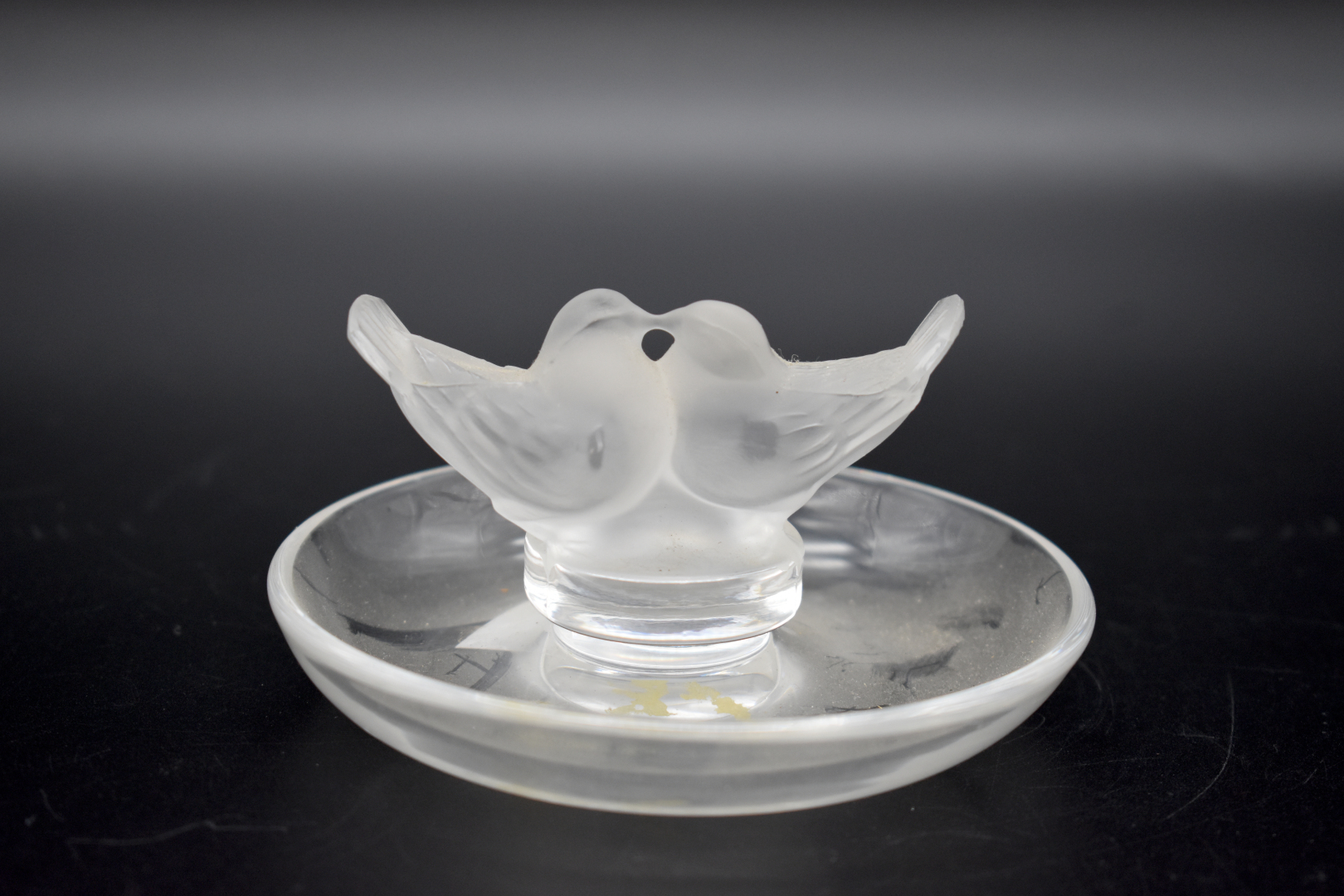 LALIQUE FRANCE. Baguier en cristal moulé pressé à décor de deux colombes. Signé sous la base. Haut. : 5,5 cm.
