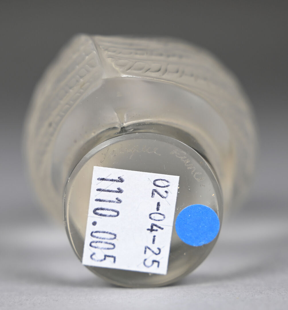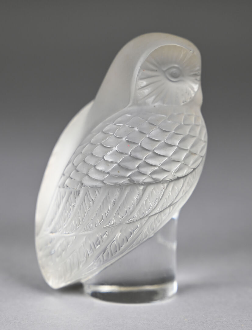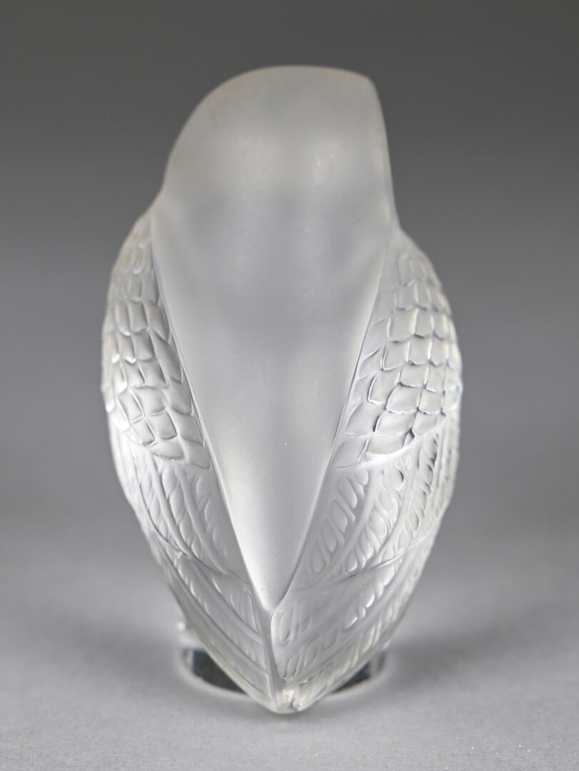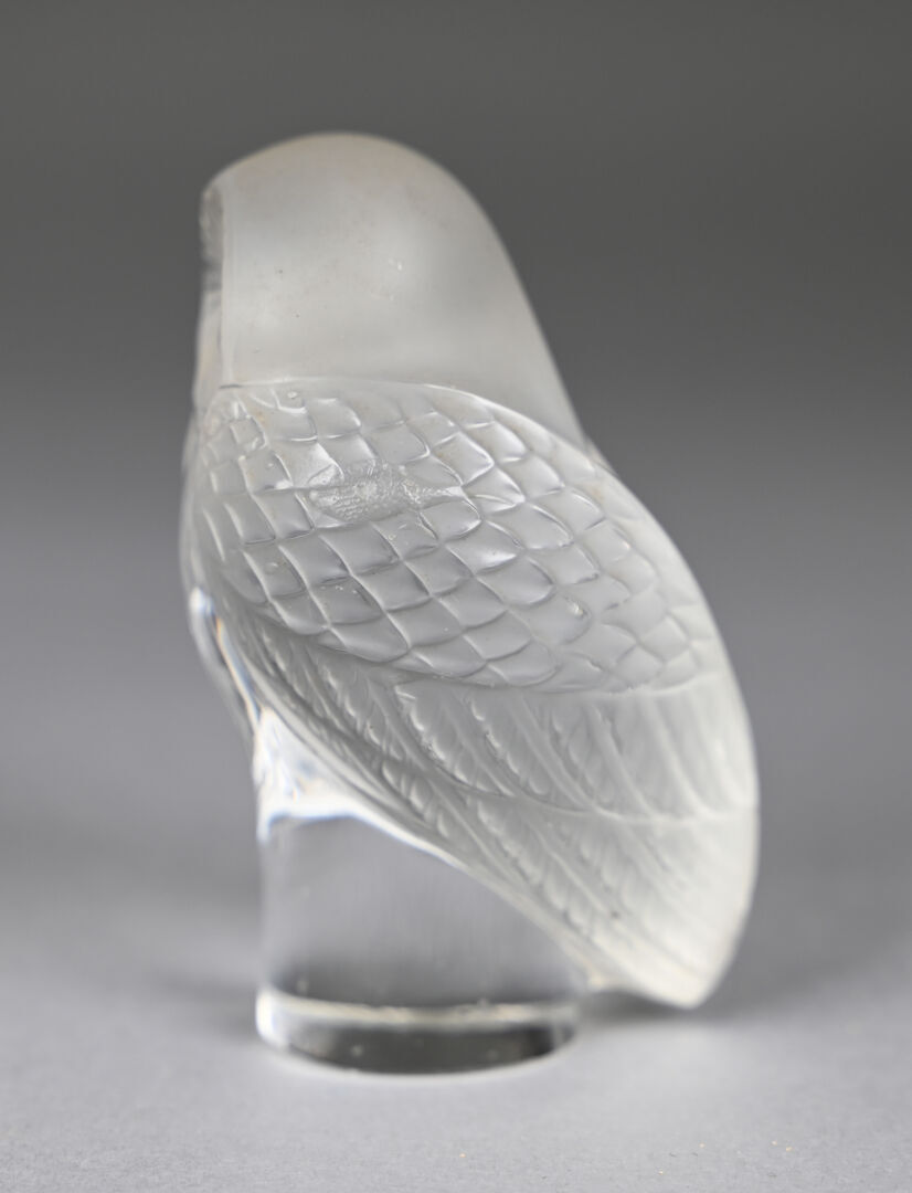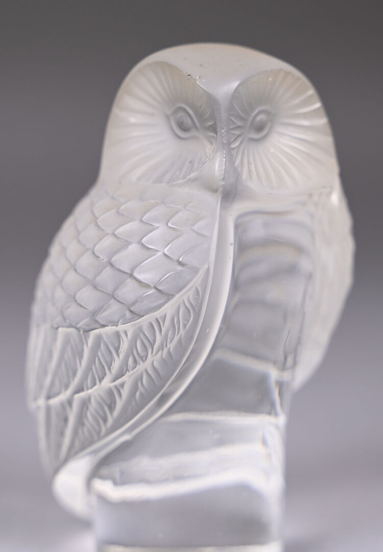LALIQUE FRANCE. Presse-papier en cristal moulé pressé dépoli représentant une chouette. Signé au dessous. Haut. : 9 cm.