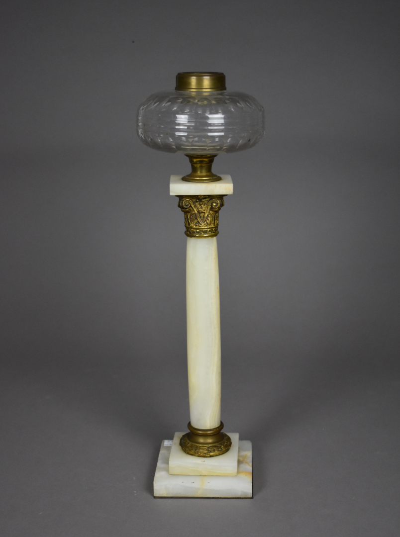 Lampe à pétrole en quartz crème. Fin du XIXe ou début du XXe siècle.