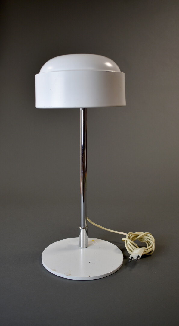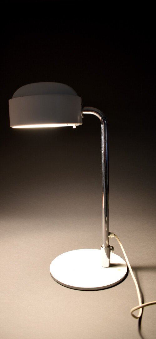 Lampe à poser en métal laqué blanc et fût chromé (traces d’usures). FLB6505. Haut. : 51 cm.
