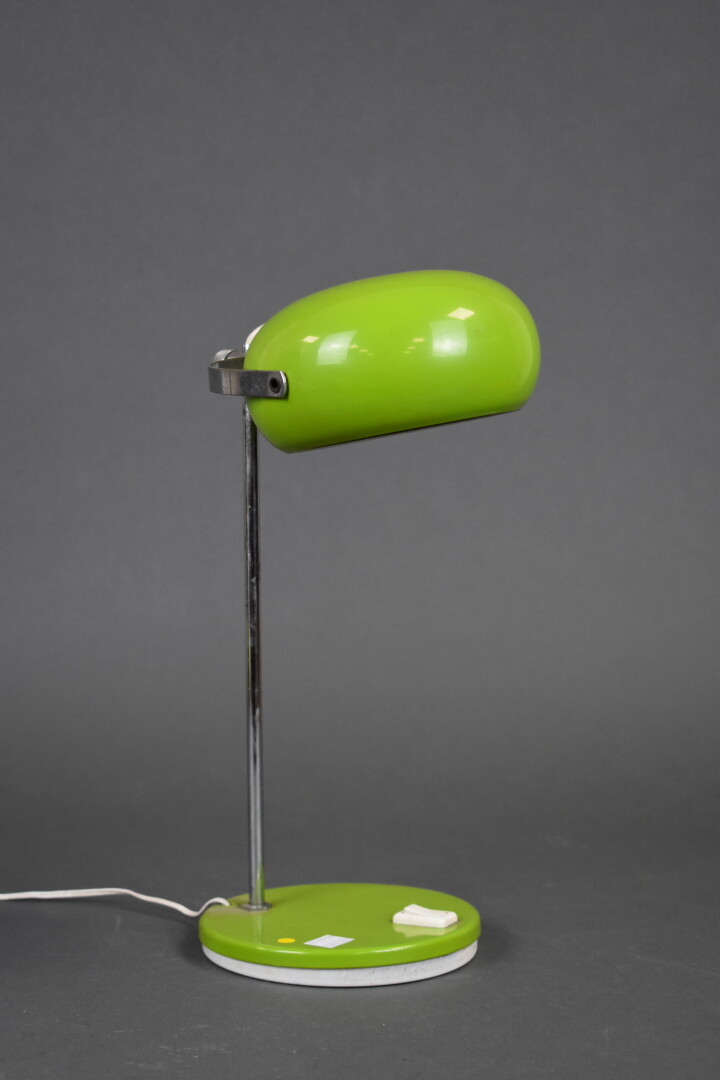 Lampe à poser en métal laqué kaki, hauteur ajustable. Milieu du XXe siècle. Haut. : 33 cm.