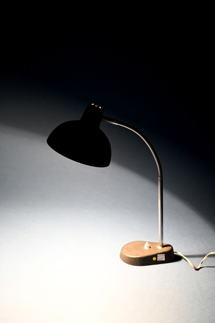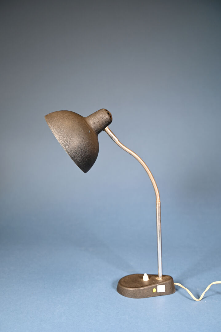 Lampe à poser en métal laqué noir, le fût à ressort. Milieu du XXe siècle. Haut. : 45 cm.