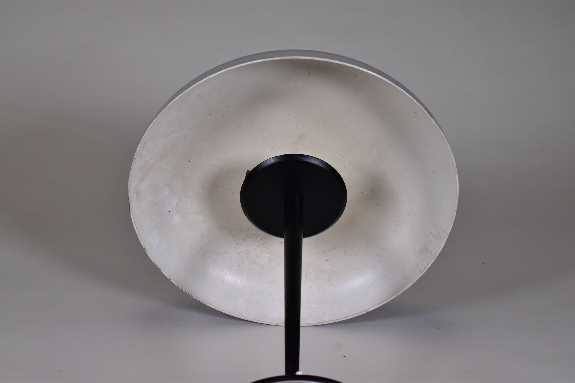 Lampe champignon en métal laqué gris et noir (usures et frottements). Travail des années 70. Haut. : 44 cm.