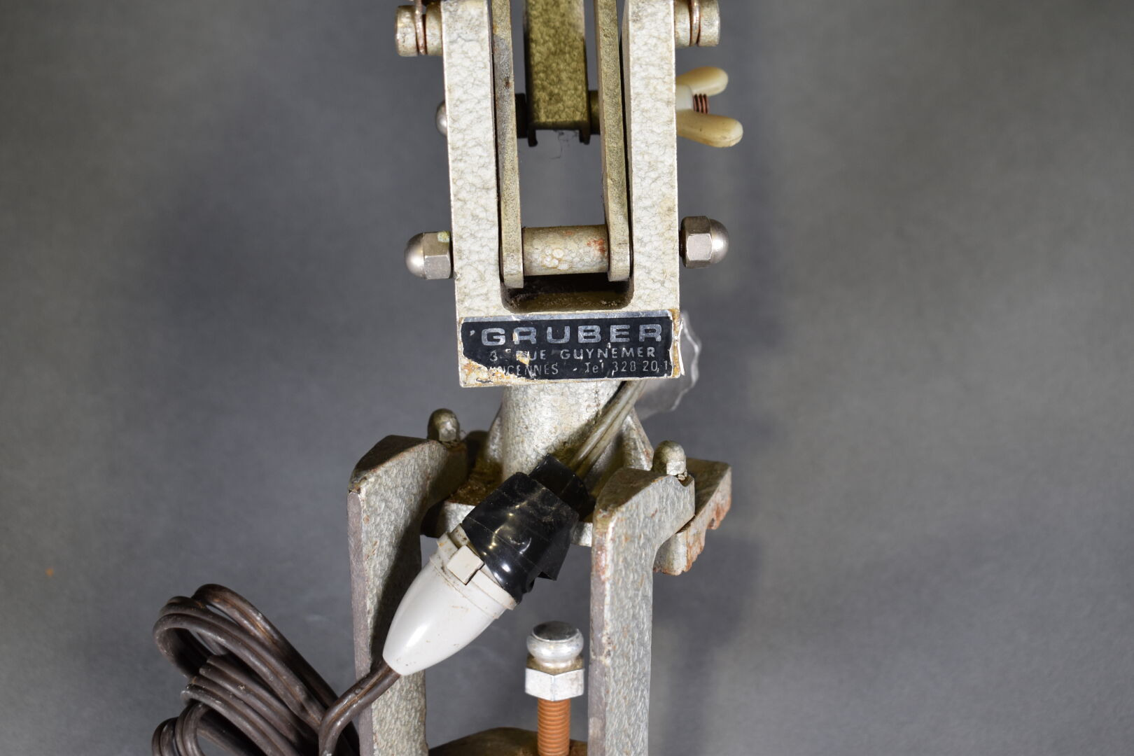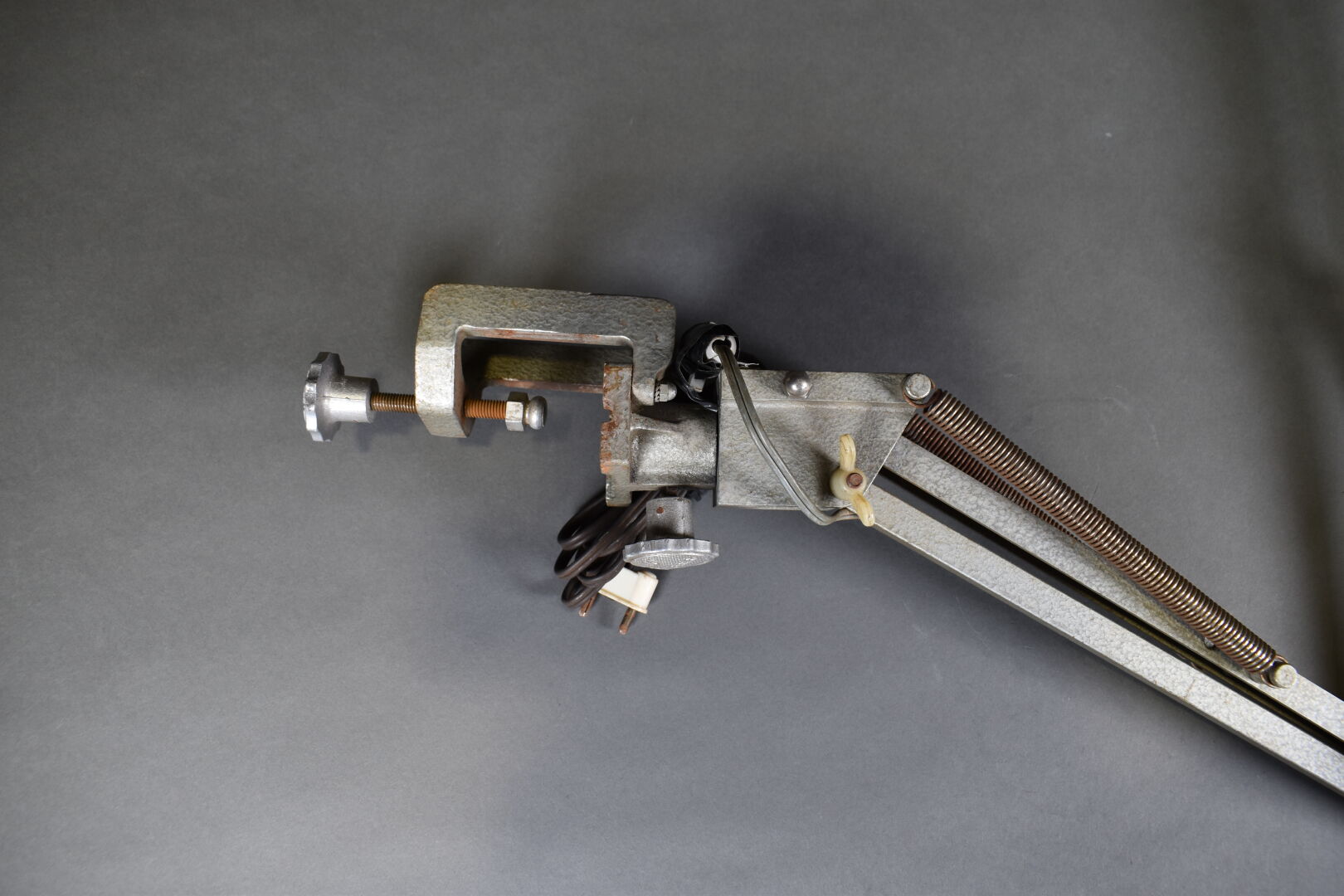 Lampe d’atelier à bras articulé en métal, GRUBER. Vers 1940/1950.
