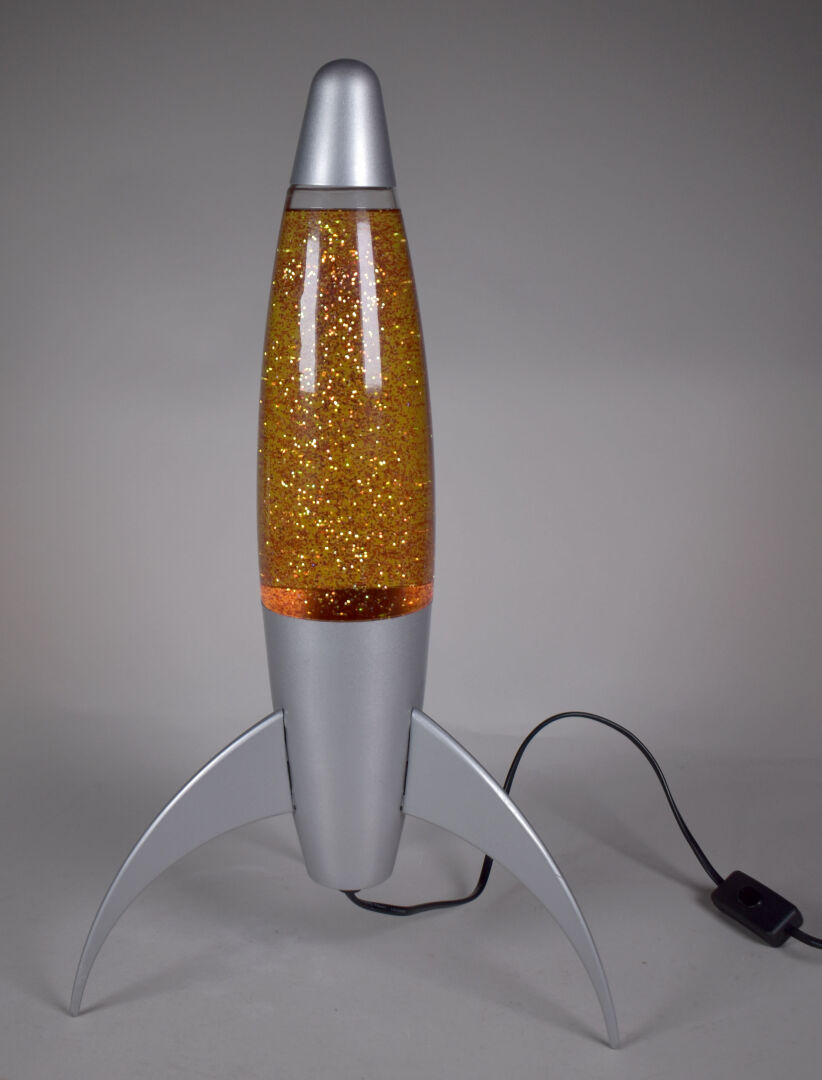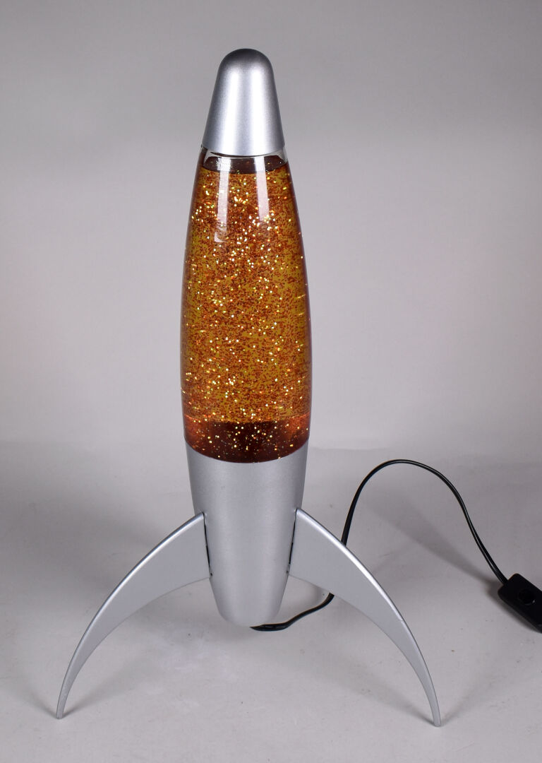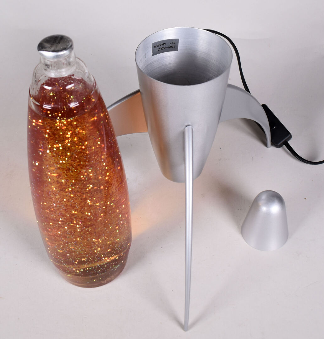Lampe fusée en métal et plastique gris. Vers 1980. Haut. : 50 cm.