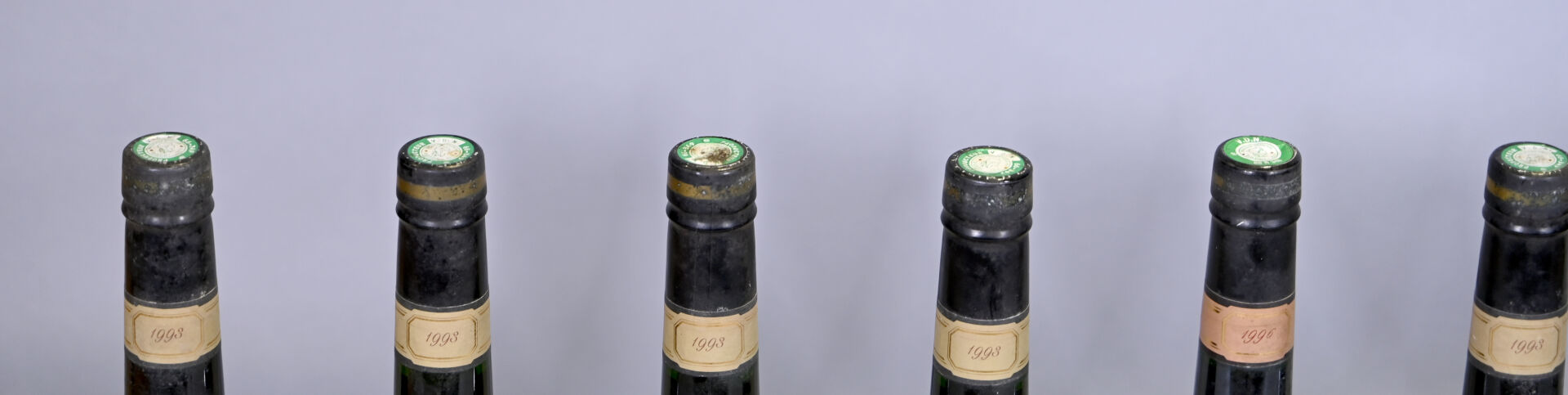 8 bouteilles, Banyuls Grand Cru, Cellier des Templiers, Mas de la Serra, Demi Sec, 1993. Capsules légèrement sales. Etiquettes avec des traces et légèrement abimées.