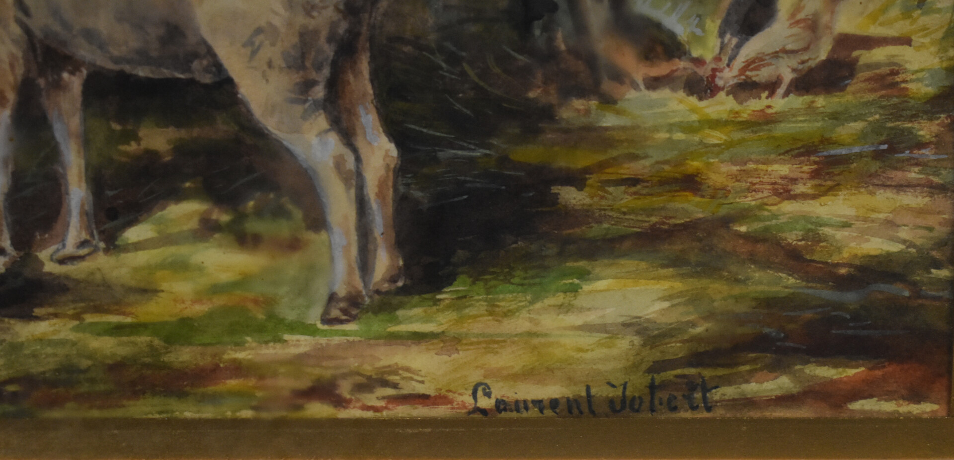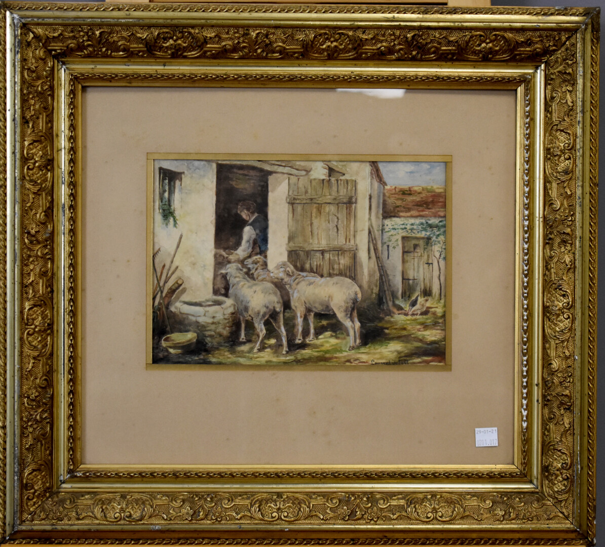 Laurent Jubert ? (XXe siècle). Les rochers, la bergerie. Deux dessins à l’aquarelle, signés en bas à gauche et en bas à droite. 18 x 26 cm et 18,5 x 26,5 (à vue). On joint une école du début du XXe siècle. Portrait de femme. Dessin au fusain. 46,5 x 37 cm (à vue).