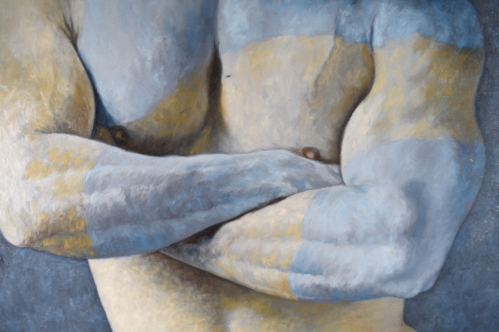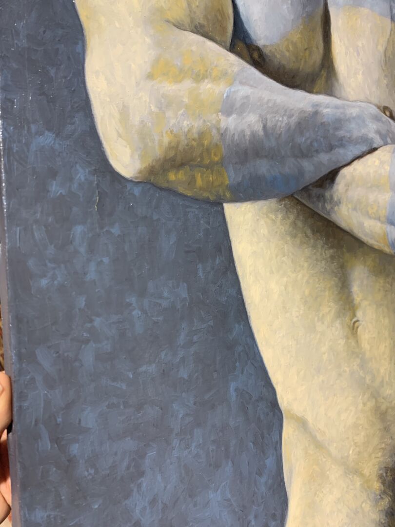 LE CORRE (XXème siècle) Nu masculin. Huile sur toile signée et datée (19)99 en bas à gauche. (Petit décollement de peinture) 61 x 50 cm.