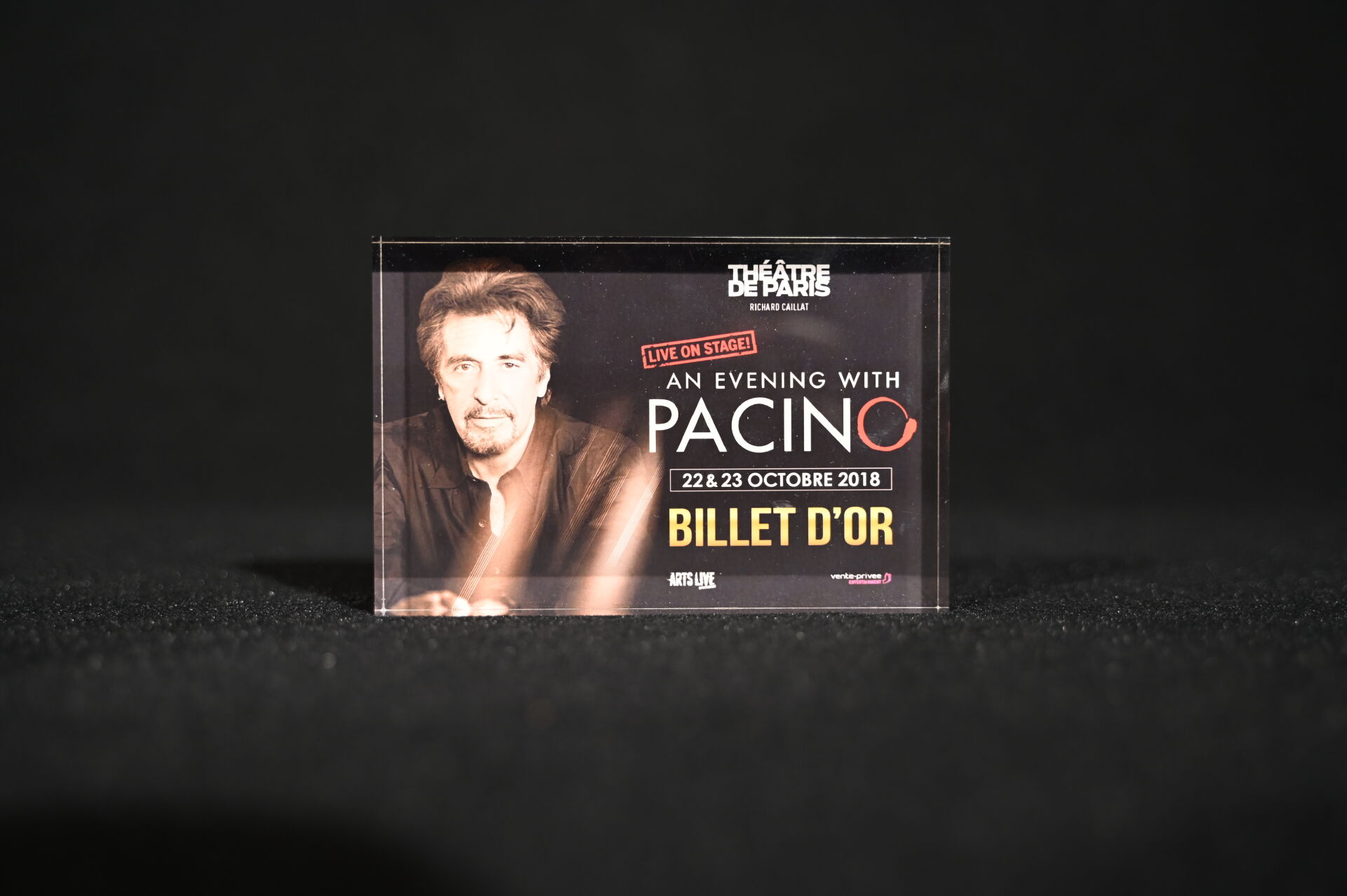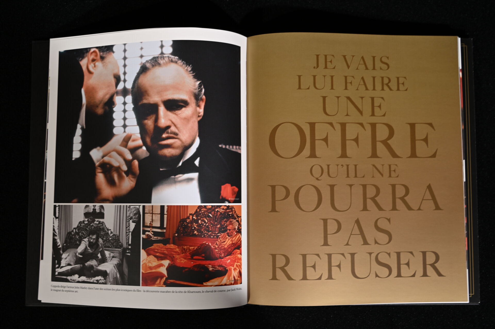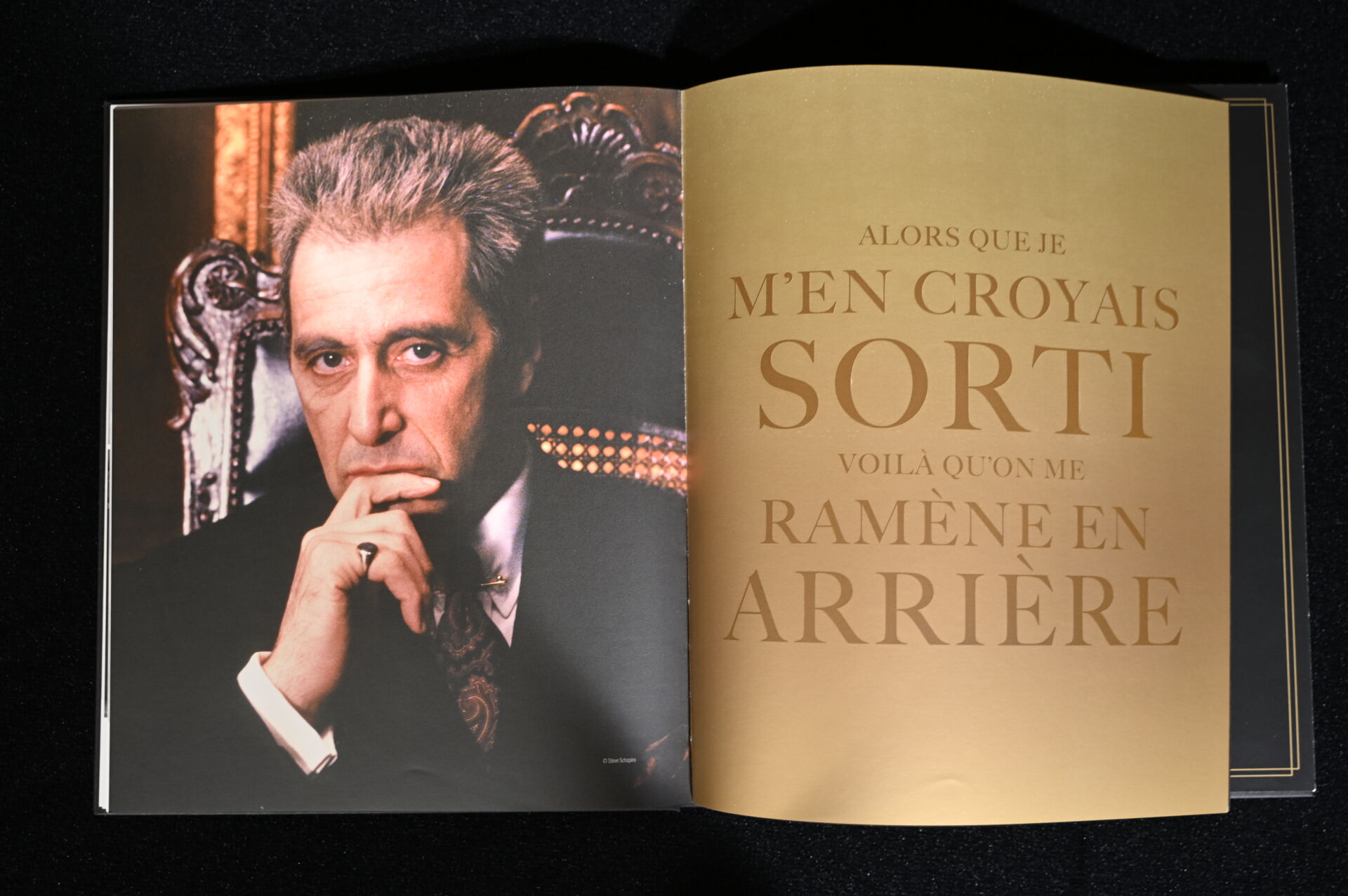 LE PARRAIN 50 ANS – THE GODFATHER 50 YEARS. Coffret avec livret montrant des photos de tournage et les DVD des trois films et bonus. 2022. On joint un bloc plexiglas « An Evening With Pacino – 22 & 23 Octobre 2018 – Billet d’Or » et un poster.