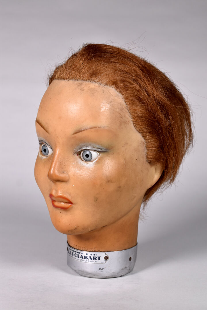 LECLABART – Postiche d’Art. Tête à coiffer. Haut. : 26 cm.
