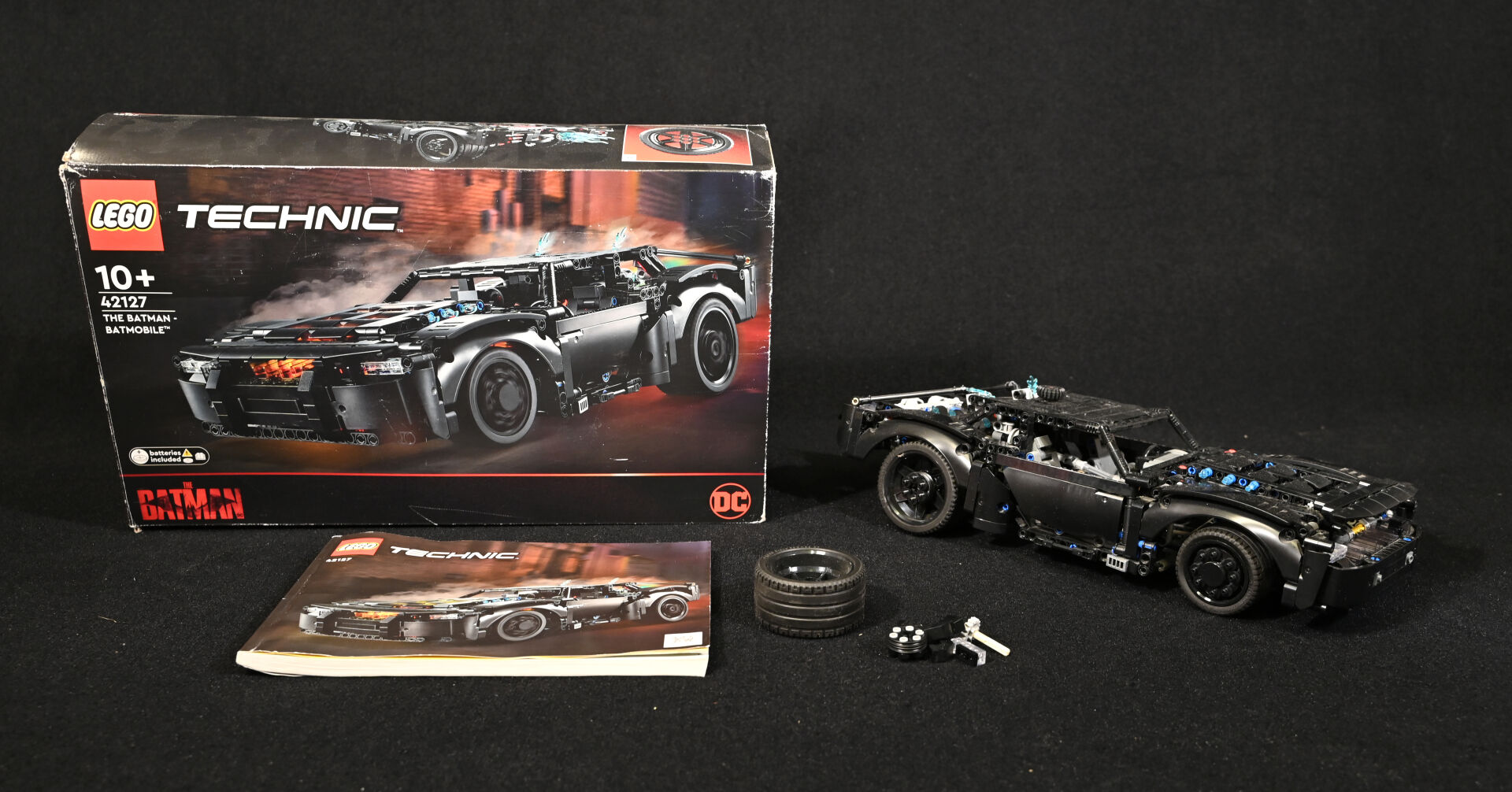 * LEGO TECHNIC – 42127 – Set DC – THE BATMAN – « THE BATMAN BATMOBILE ». Set monté, boîte abimée, aucune indication sur la complétude ni fonctionnement. Livret.
